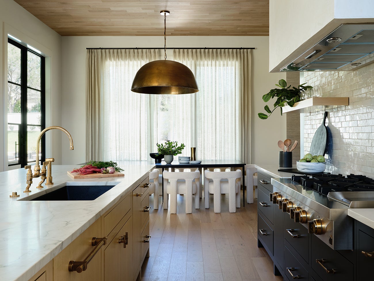 Homepage image: An Austin kitchen by Annie Downing gets added luster from a brushed brass pendant | Lindsay Brown