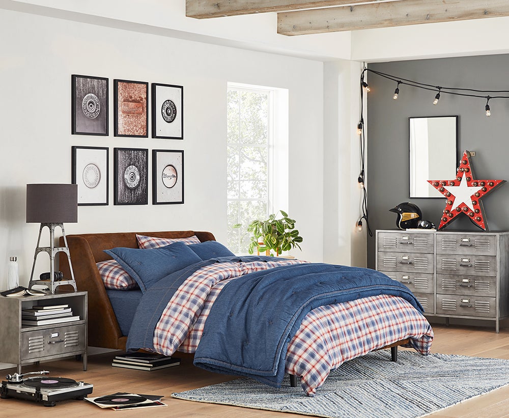 Pottery Barn Teen has released a new collection in partnership with denim company Wrangler. Western-inspired pieces meet contemporary design in this sustainable line that features recycled denim storage bins, a chaise lounge sectional, bedding and more.