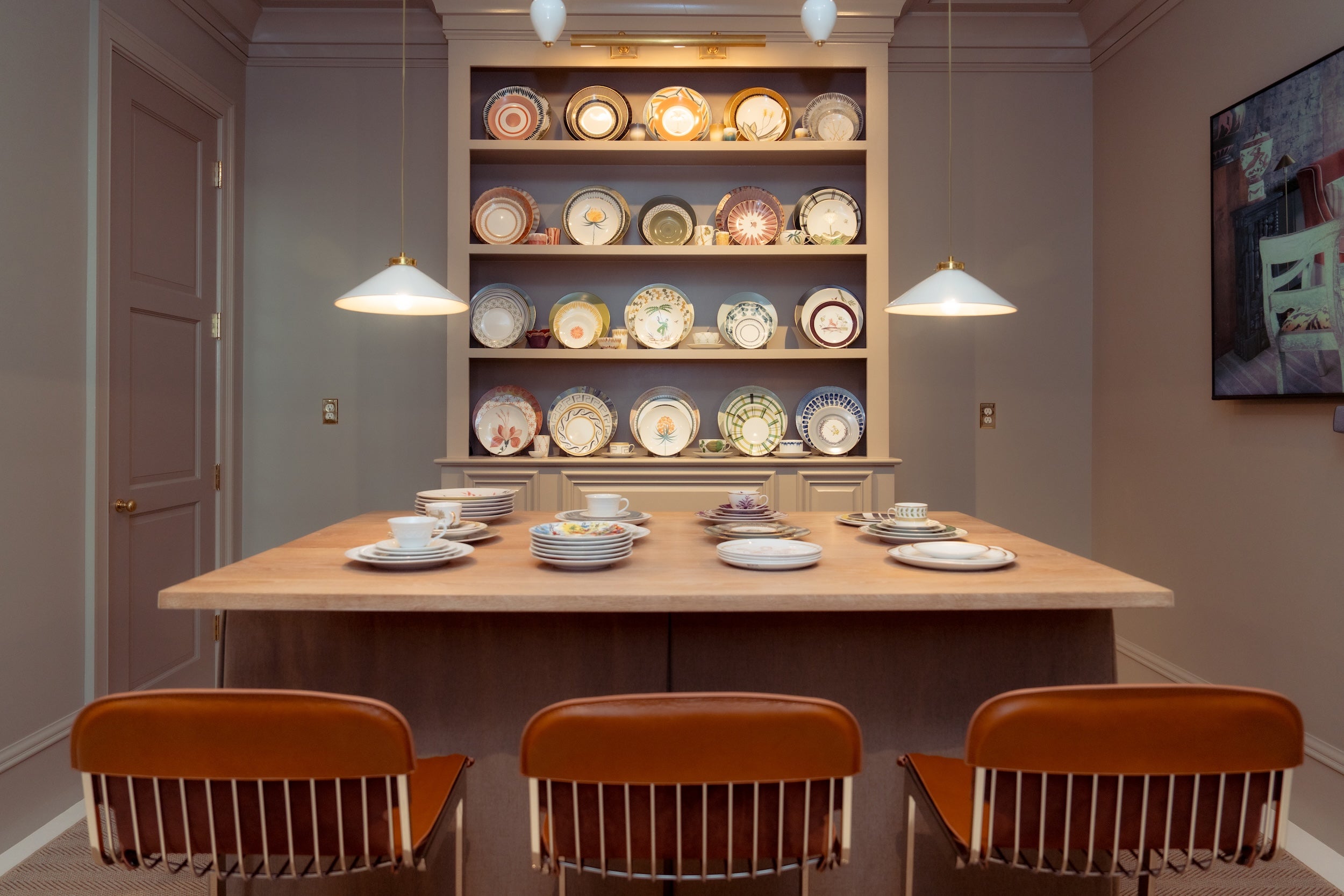 Some of those products include hand-painted pillow designs from London-based artist and former Gucci creative director Gergei Erdei (whose items almost instantly sold out); Limoges porcelain from Parisian ceramicist Alix D. Reynis; hand-painted lampshades from British artist Alvaro Picardo; custom hand-blown glass bowls created in collaboration with glass artist Andrew Iannazzi of Vitricca Iannazzi; and homewares from the London-based artist Giuseppe Parrinello, known for his Greco-Roman influence. Visitors can also partake in a design studio experience in collaboration with French porcelain brand Marie Daâge to create custom china patterns.