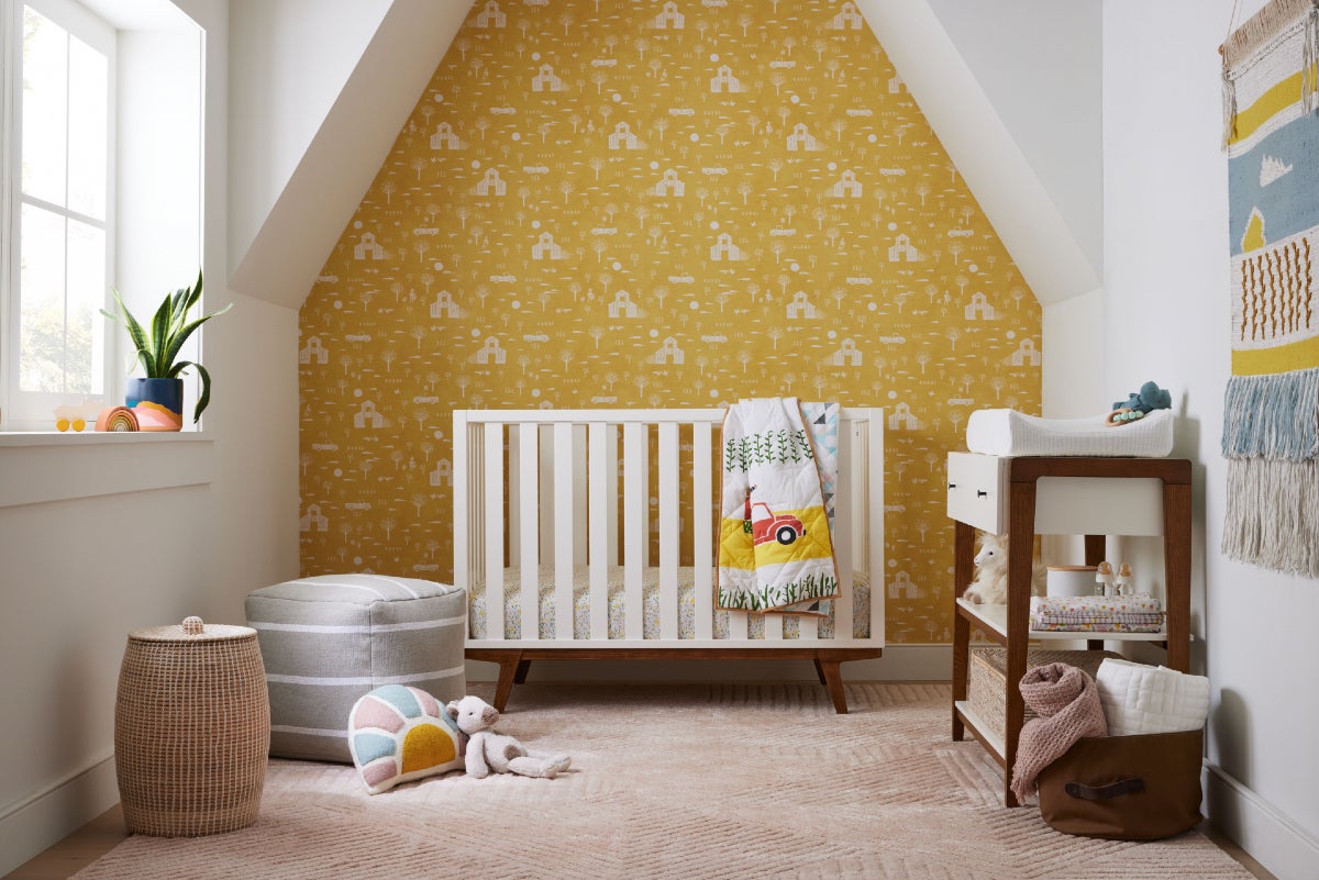 West Elm has debuted its first collaboration for West Elm Kids—an interpretation of the children’s book The Old Truck, authored and illustrated by brothers Jarrett and Jerome Pumphrey. Through the lens of a young Black girl’s imagination, the book tells the story of one family’s hard work and persistence through a life spent on a farm. The corresponding limited-edition collection includes 13 gender-neutral baby and kid-friendly pieces—such as quilts, pillows, rugs, wallpaper and home accessories—featuring the book’s block-print illustrations in bright colors.