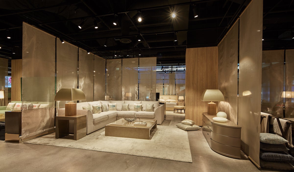 The new showroom arrives on the eve of Armani/Casa’s 20th anniversary next year. In addition to the aesthetic refresh, the highly detailed, built-out space (preliminary estimates were at $1.2 million) affords the ultimate luxury: atmosphere. The interiors team has created multiple vignettes for day and night, separated by mesh dividers that filter the light; oak floors and clean details echo the Milan flagship. There is also the room to show the goods. At more than 7,000 square feet with nine windows around three sides, the brand’s “new postcard” presents a real, expanded view of the collection.