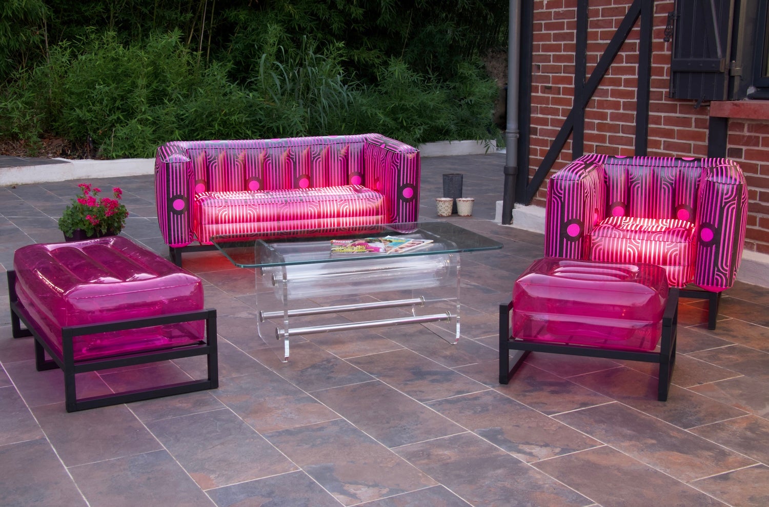Digital design atelier Society of Wonderland and French design brand Mojow teamed up on a limited-edition furniture collection that brings a playful spin to Mojow’s Yomi collection. The collaboration will see the brand’s midcentury-style inflatable sofas, armchairs, benches and poufs decorated with large-scale patterns available in pink, black and white shades.