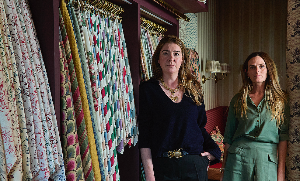In a bittersweet twist, their journeys brought them back together in the U.K. due to loss and illness (the sudden death of Flora’s partner and Gemma’s battle with breast cancer), and an opportunity to collaborate unexpectedly arose when Flora, who was writing a book for Rizzoli, asked her sister for help. “From the beginning, it was very evident that this book was going to slightly become a beast of its own, and certainly a sort of more personal story than I’d anticipated, and calling on Gemma and her extraordinary skill set and ability to write was a very natural coming together,” the designer tells host Dennis Scully on the latest episode of The Business of Home Podcast. “It was an unspoken dialogue, as only siblings can have. But over that period of nine months, it evolved and became very apparent that there was the demand and place for a much more formal role for Gemma to step into, should she wish to do so.” In 2023, Gemma officially joined the business and has been running the day-to-day of the fabric brand ever since.