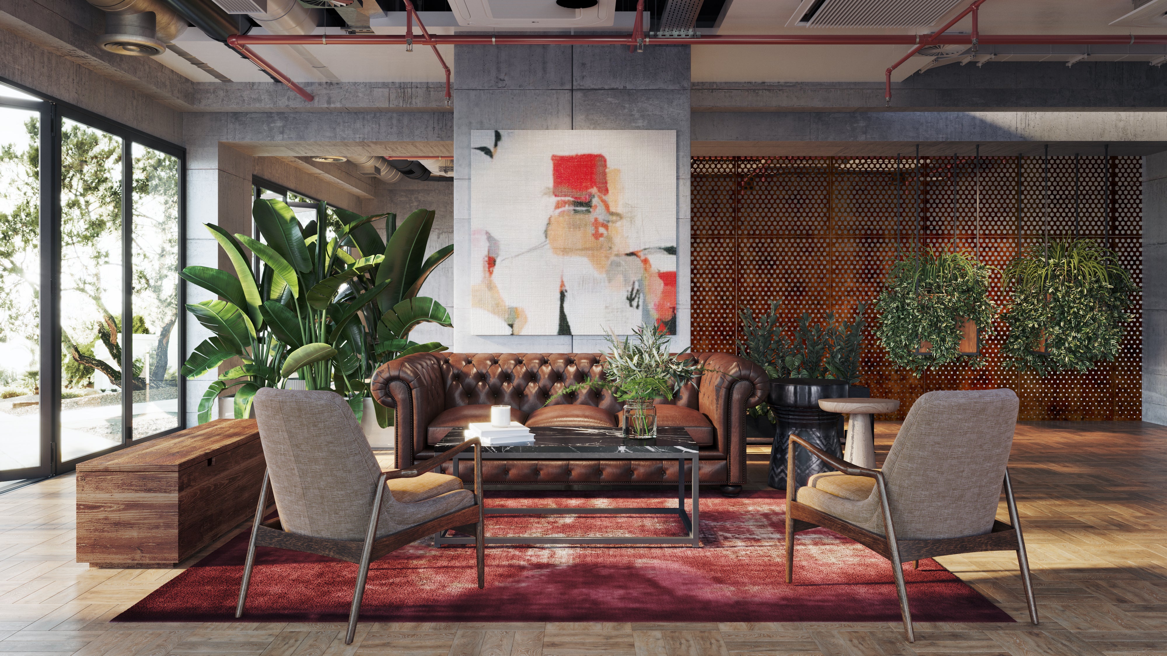 Homepage photo: A 3D rendering of a common space for Raymour & Flanigan’s new B2B collection | Courtesy of Raymour & Flanigan