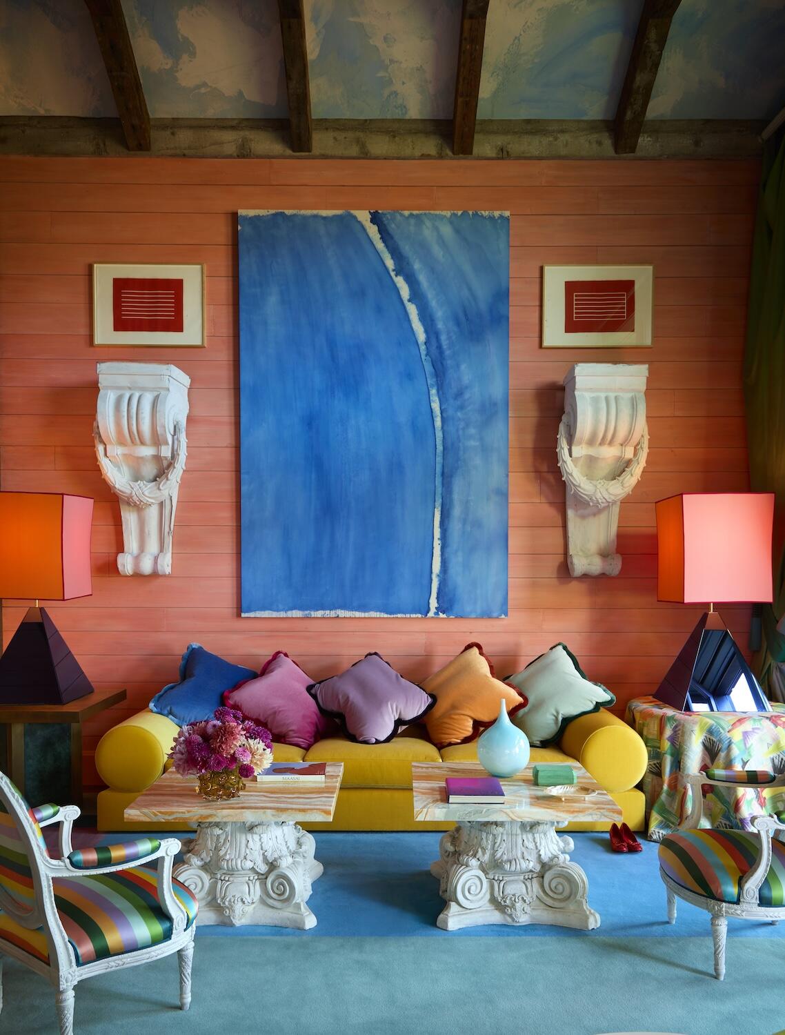 Patrick Mele partnered with Aronson’s Floor Covering on the Color Field collection. Available through KRB, the polychromatic line pays homage to the color-blocked works of Josef Albers and features four pure New Zealand wool rugs, including the op art–esque Centered, the geometric Placid Landscape, the asymmetrical Burst and the prismatic Centered Burst.
