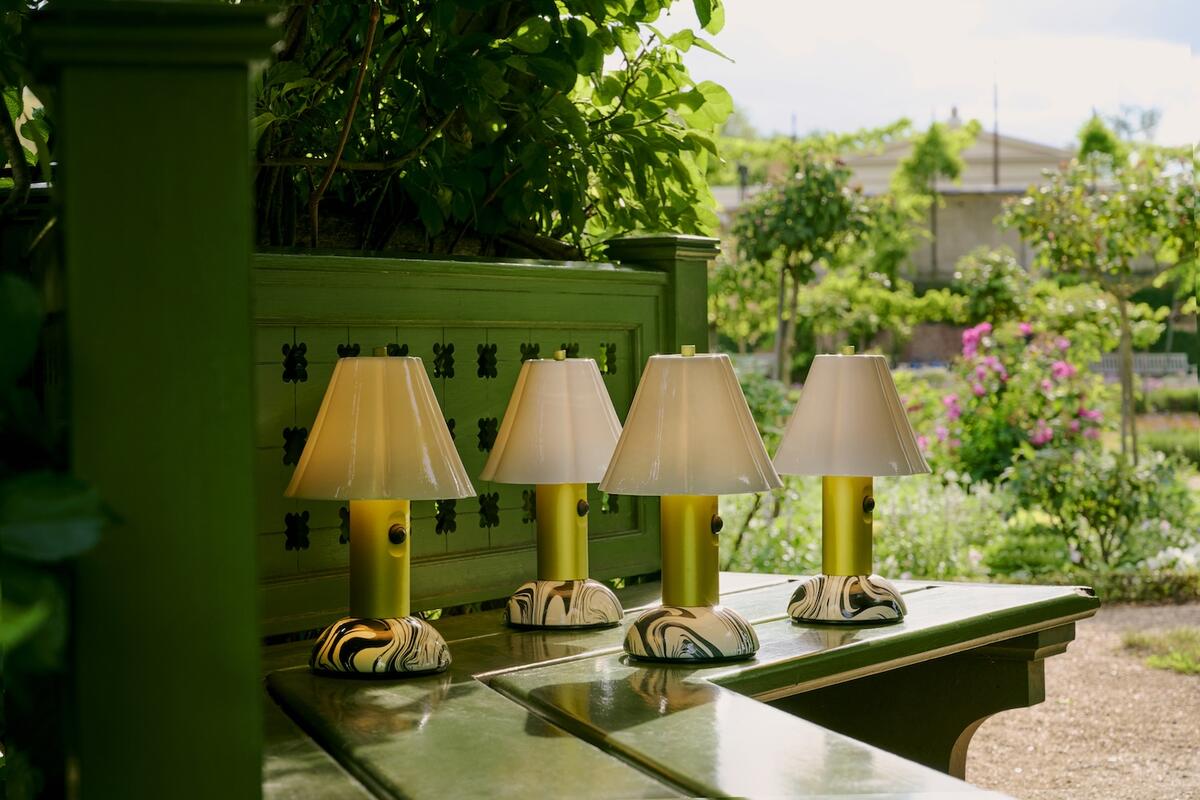 British lighting brand Original BTC tapped German architect and designer Fabian Freytag for a limited-edition drop. The collab reimagines the former’s portable Blossom lamp as a high-contrast design outfitted in a fluted ceramic shade, metallic green stem, and black-and-white hydro-dipped base.
