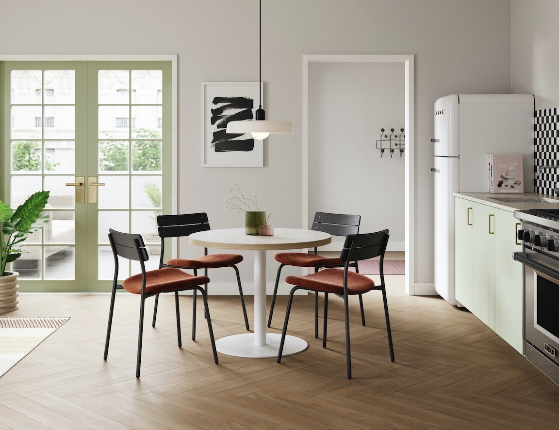 The Michigan-based company, founded in 1997, has built a sizable international business making seating for restaurants, and creative director Dean Jeffery reasoned that it could make a dent in the residential business with its new brand, Only Good Things. “A lot of e-commerce furniture brands are focused on big upholstered pieces like sofas, and the kitchen and dining rooms are an afterthought,” he says. “So, we thought it was a chance for us to expand.” The initial goal was to launch in 2022, stretching development over a nice-and-easy three-year period. Then 2020 happened, and Jeffrey’s timeline was cut down to six months.