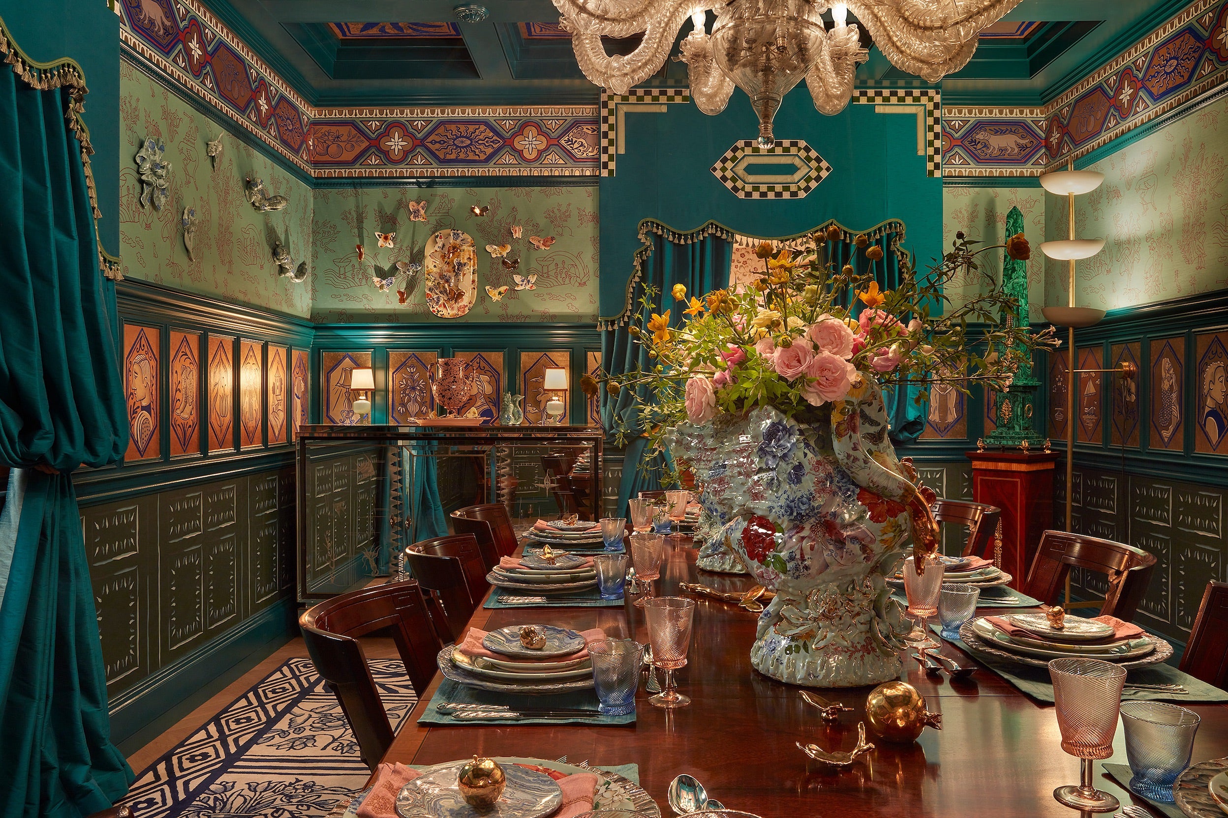Globe-trotters have till July 4 to get inspired in situ by the immersive, imaginative installations. After that—guided in part by the sustainability experts at Positive Luxury—absolutely everything, from mosaic clawfoot bathtubs to Murano swan–like chandeliers, must go ... on to another location or use, that is, reflecting Wow!house’s commitment to recycling and repurposing. So make like Shakespeare and get thee to England before then. To prepare, let the designers talk you through their rooms, from the fantastical Italianate entrance to the tropical island terrace at the end.