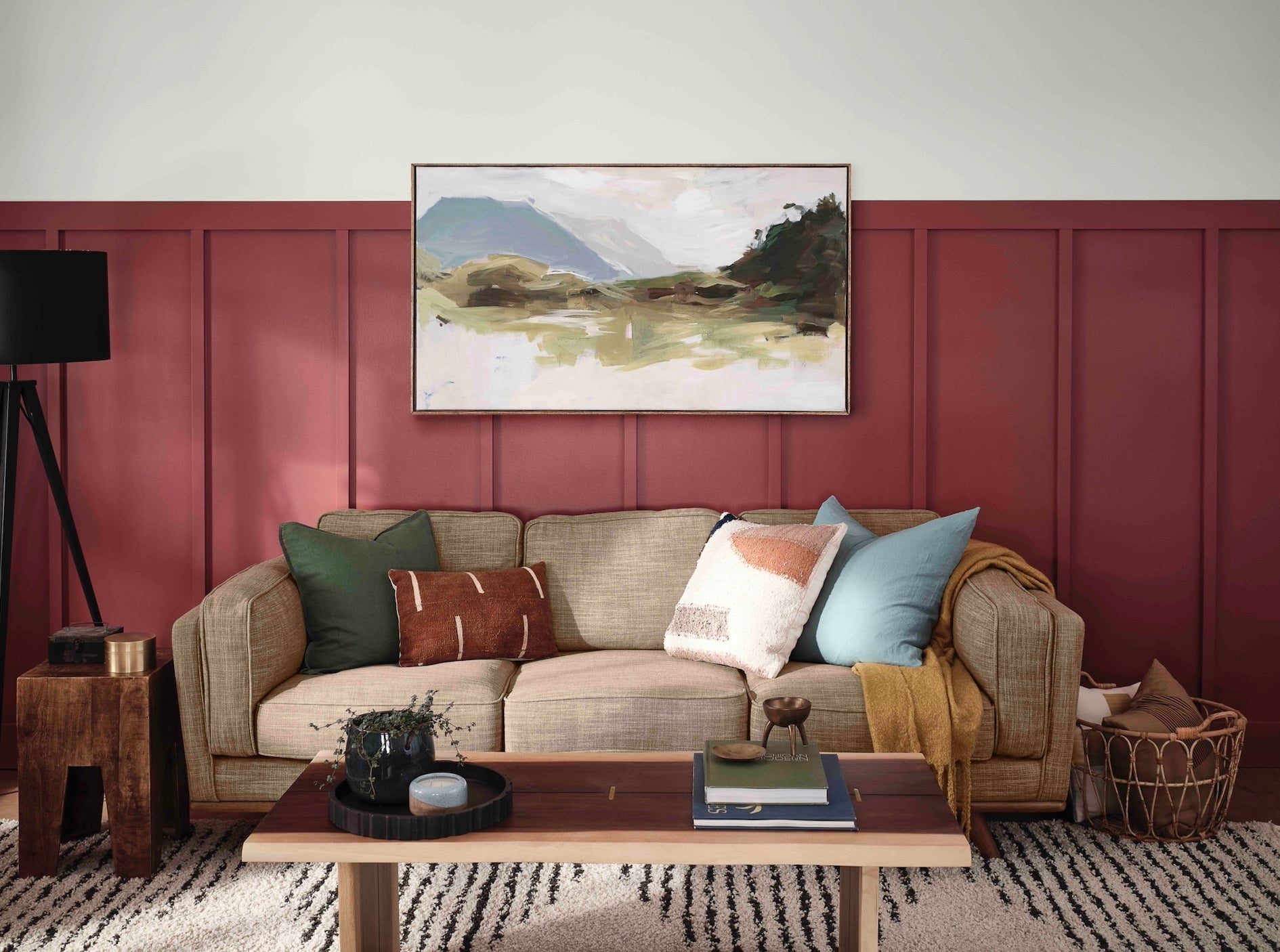 Homepage image: A living room featuring the HGTV Sherwin-Williams 2021 Color of the Year, Passionate | Courtesy of Sherwin-Williams