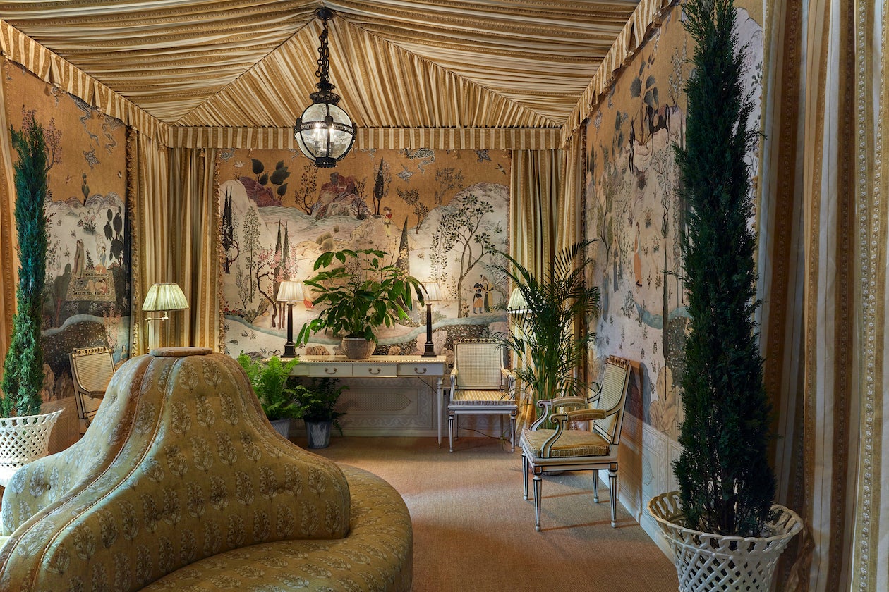 “It’s fantasy with its feet on the ground,” says Claire German, CEO of Design Centre, Chelsea Harbour, of her “mad lockdown idea” to construct a “democratically divided” 5,382-square-foot longhouse within the convention space. “Each designer has a fabulous room to work with.” In lieu of a traditional facade, the Wow!house entrance features 3D-printed geometric mandalas repurposed from 2022’s event by local architecture firm Mamou-Mani. “You would never know once you’re within the house that you’re within the Design Centre,” says German. “It feels incredibly intimate.” A custom soundscape by Guyanese-American harpsichordist Leslie Kwan and a signature scent by British bespoke candlemaker Wick & Tallow add to the sensory experience. With an eye on sustainability, most of the furnishings are for sale, and a portion of the profits will go to TP Caring Spaces, a charity founded by two of the Wow!house’s inaugural designers that creates holistic interiors for hospitals and other communal settings.