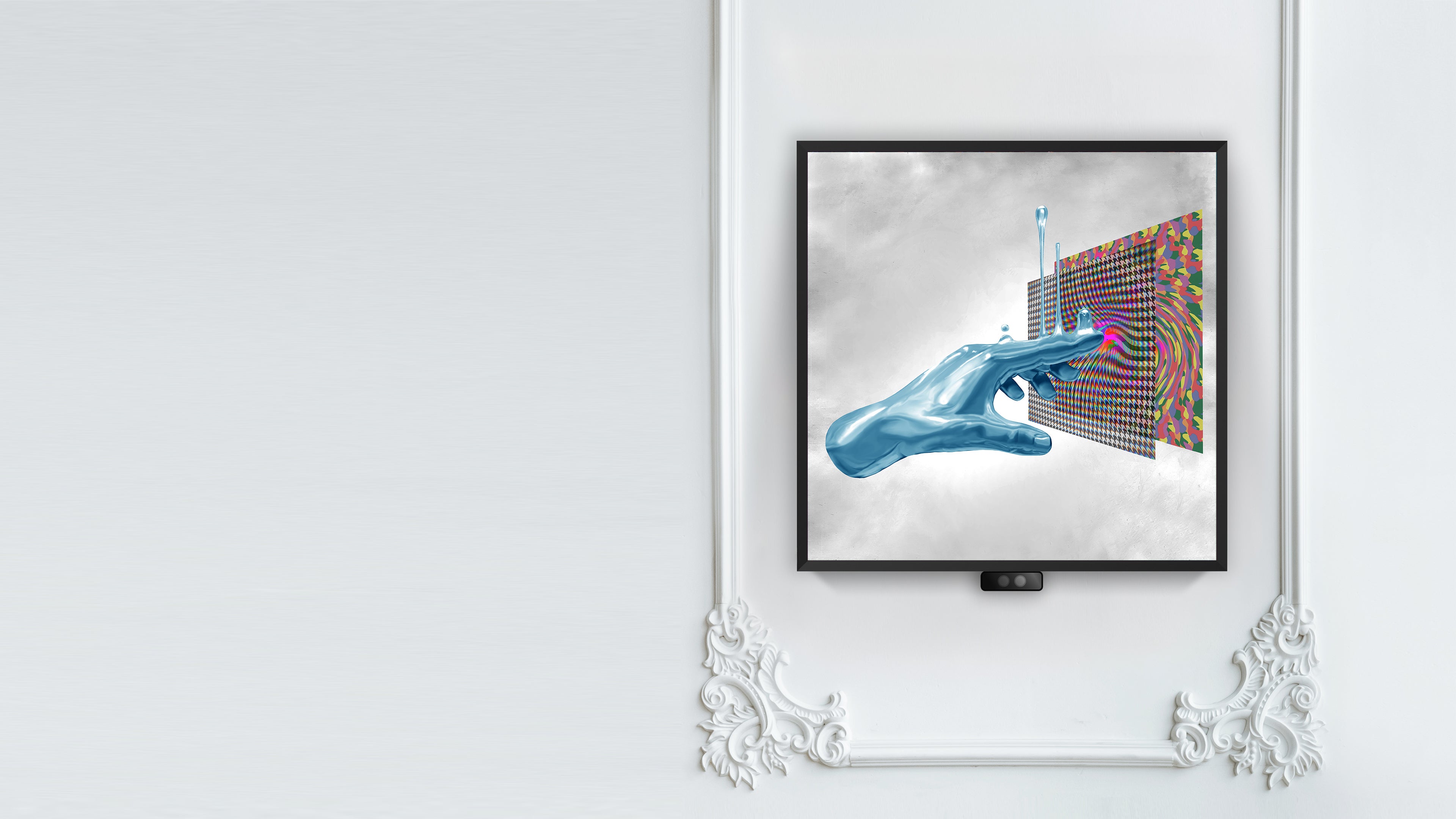 According to Merritts, the basic technology behind NFT frames is similar to that of a television, though the differing functions demand slight alterations. For one, the 16:9 aspect ratio used on television is better matched to film, while the vast majority of digital art fits much better into a 1:1 aspect ratio. Also, televisions are typically meant to be turned off (at least occasionally). Since NFT frames are on all the time, their structure requires protections against burn-in images and features a matte finish to counteract the glare from direct sunlight. Additionally, Lago’s frames have the ability to incorporate works with video or movement elements and can also utilize gesture control, a function that allows individuals to interact with the art through motion-sensor detection. Similar products from other NFT frame companies also incorporate the same or additional adjustments, with Tokenframe offering built-in speakers for pieces with sound components, and Infinite Objects providing compact-sized stand-alone frames.