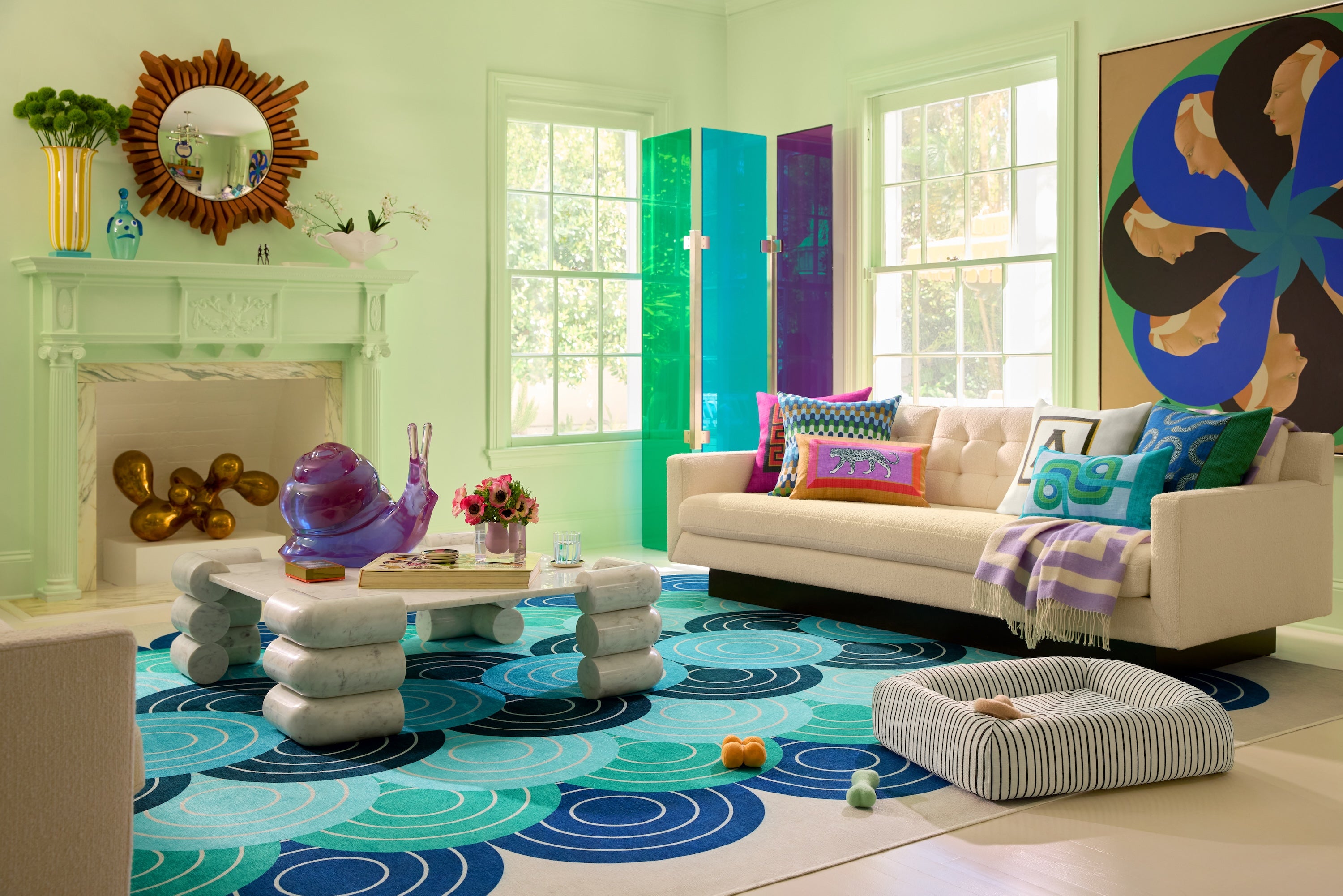 Together with designer and repeat collaborator Jonathan Adler, Ruggable has released a collection of home accessories—including pillows and pet beds (inspired in part by Adler’s rescue dog, FoxyLady). The new styles were designed with Adler’s signature Modern American Glamour aesthetic in mind, complete with striking geometric patterns, jewel tones and wildlife-inspired motifs.
