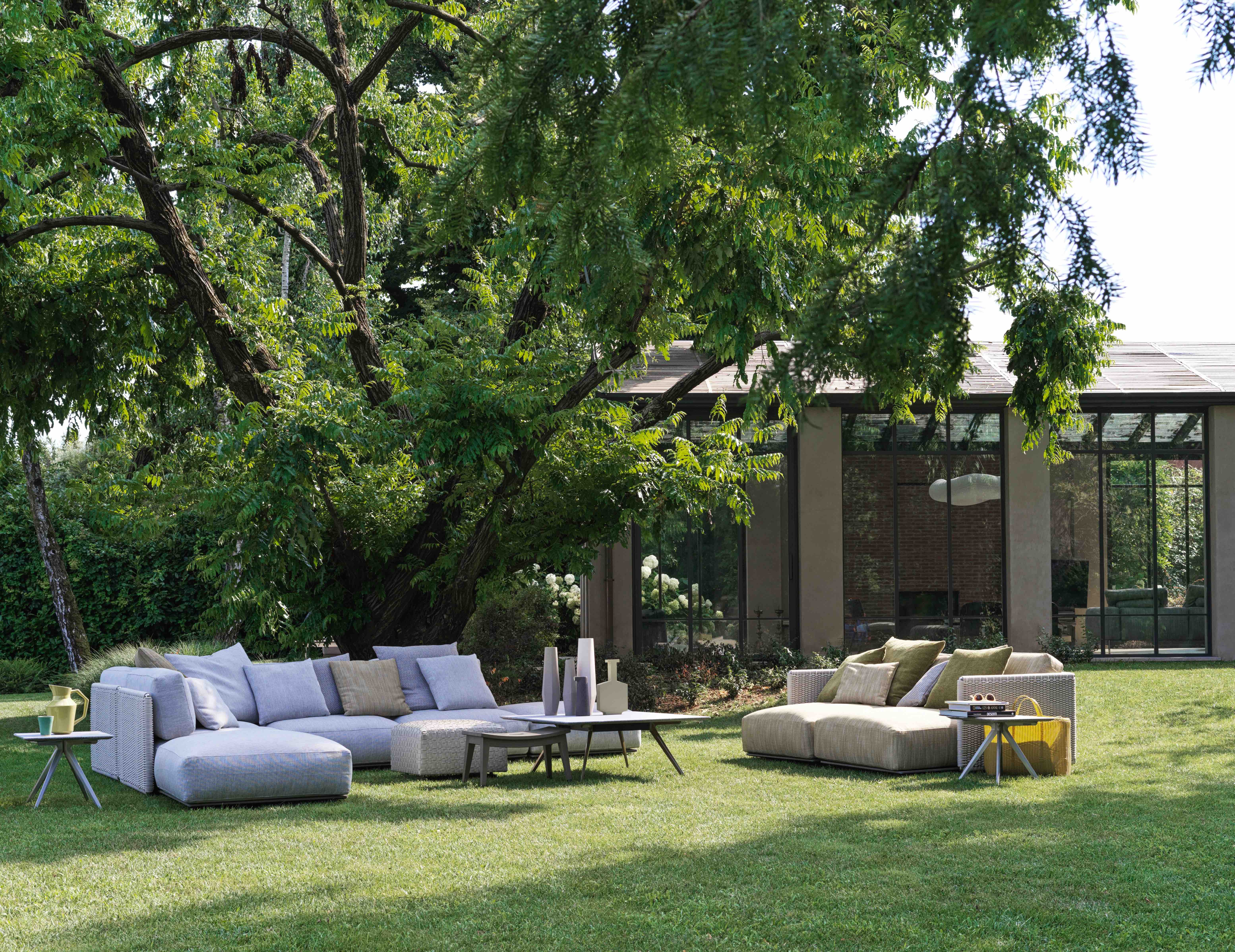 The collection is so versatile that many pieces could even be used inside, allowing for true indoor-outdoor living and giving designers more opportunity to innovate with Flexform products in every room. “You can create a true dialogue of the entire home,” says Herman.