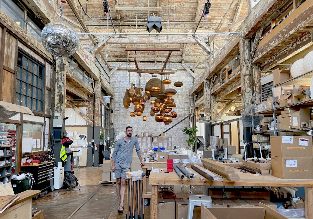 At the outset, Grizzle says he approached the business backward from what most makers do—instead of targeting residential designers for one-off orders, he built his foundation working on larger-scale projects where he was fulfilling contract orders of 20 or 30 lights at a time. (One of Graypants’s first commercial projects was selling more than 2,000 lights to Starbucks.) It wasn’t long before Grizzle had to scale production and hire a team—starting with interns, many of whom became full-time employees. Around 2012, he moved the operations to a dedicated studio space in Seattle’s industrial district, on the eastern shore of the Duwamish Waterway. “Once we were able to move the business and give it its own space—and the laser cutter wasn’t opposite my bedroom—we were really able to change the scale and the way we were thinking,” he says. “It allowed us to dream a little bit more and have a different perspective of what we could do.”
