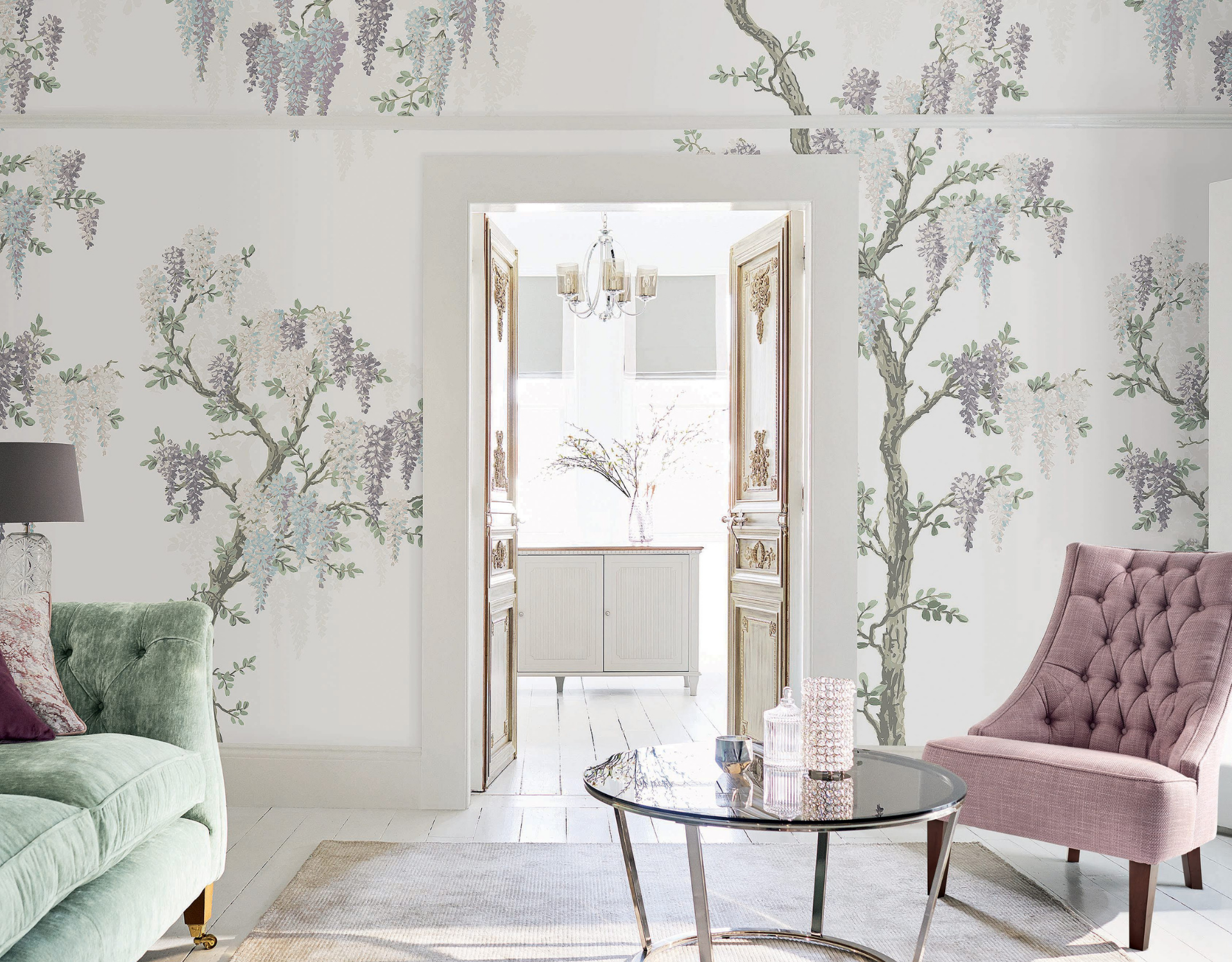Homepage photo: The Wisteria Garden wallpaper from the Laura Ashley collaboration with Graham & Brown. | Courtesy of Graham & Brown
