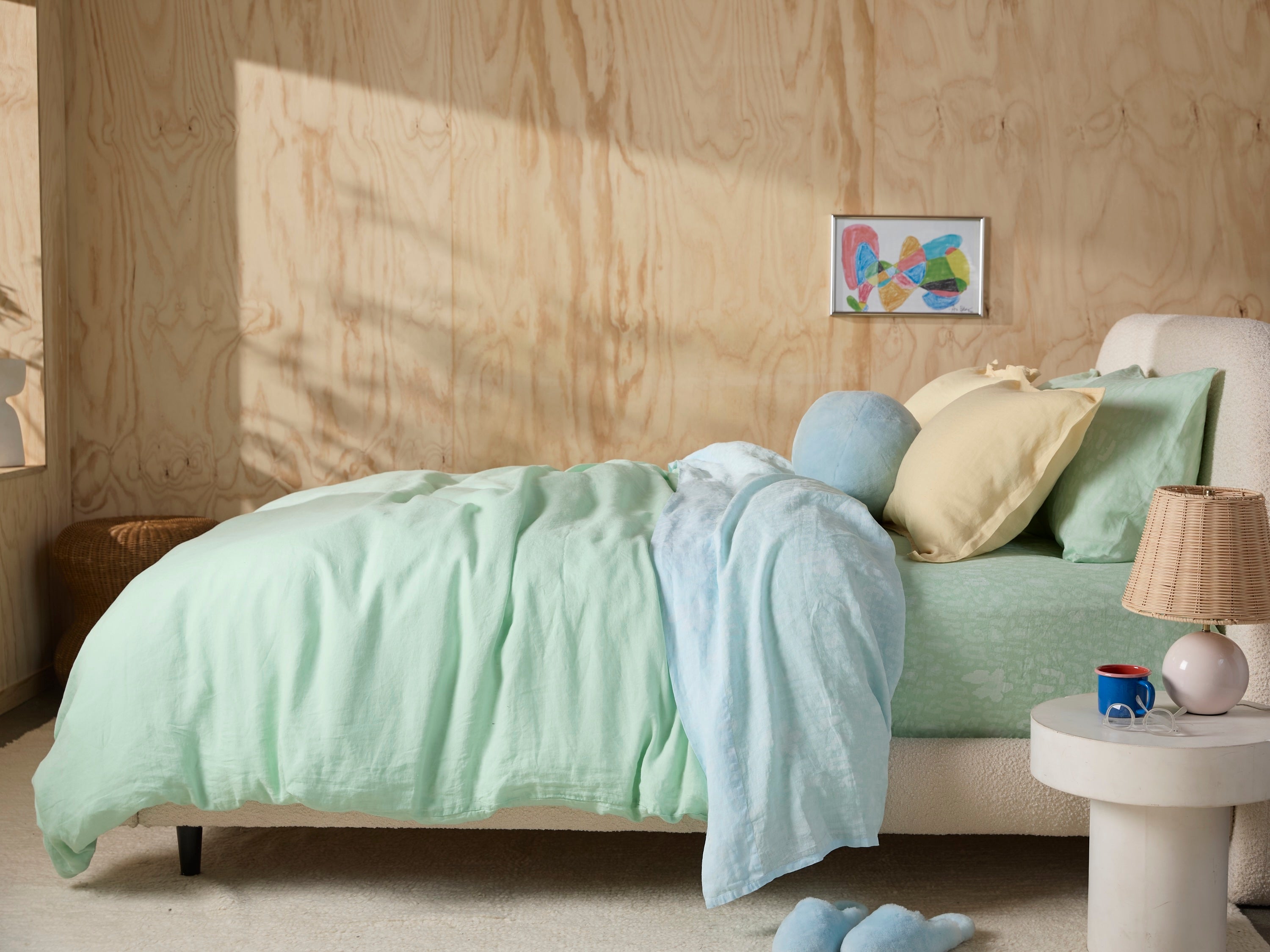 Musician and designer Tyler the Creator’s lifestyle brand Le Fleur partnered with Parachute for a limited-edition collection of bedding and accessories. The collaboration takes a hint from Tyler the Creator’s own aesthetic—whimsical, playful and unpredictable—for an assortment of linens, pillows, throws and apparel available in leopard print and fuzzy fabrics.