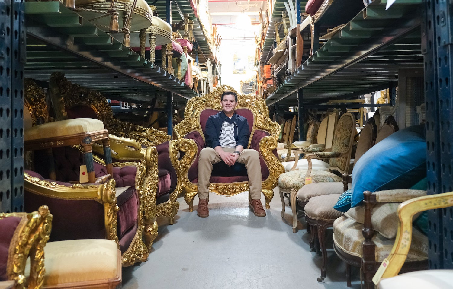 The change also carried another risk: In the sniffy world of high-end antiques, it may deter some potential buyers to hear that a coveted armoire was recently used in a Claritin commercial. For that reason, Baer was careful to maintain some segregation between the two sides of the business, both physically and digitally. Though the Newel Props and Newel Antiques websites feature nearly identical stock—two different windows on the same view—the sites don’t explicitly link to each other. And in addition to the sprawling LIC warehouse, Baer maintains a traditional showroom in Manhattan and a presence at the 1stdibs Gallery on the West Side—both environments tailored explicitly for selling, not renting.