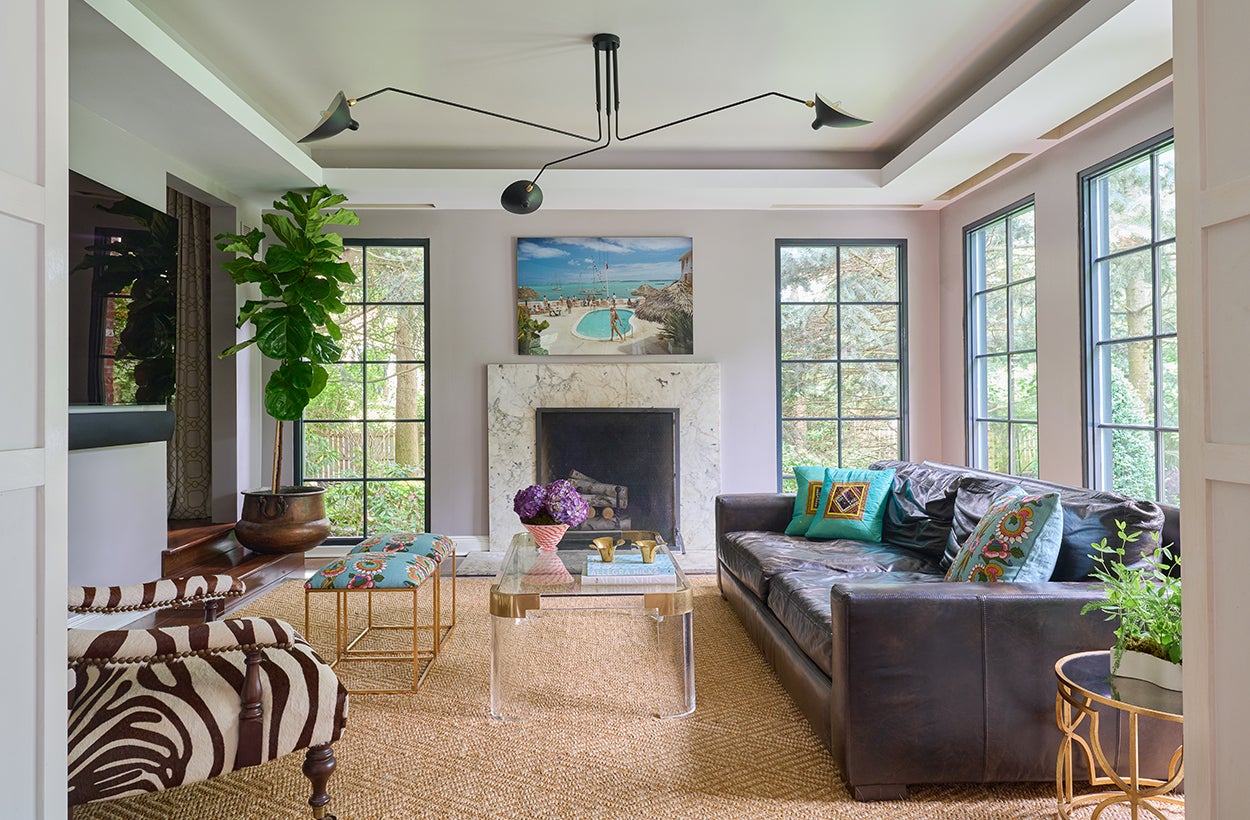 Homepage image: Kristina Phillips uses woven textiles and pops of color to bring this New Jersey living room together | Jane Beiles