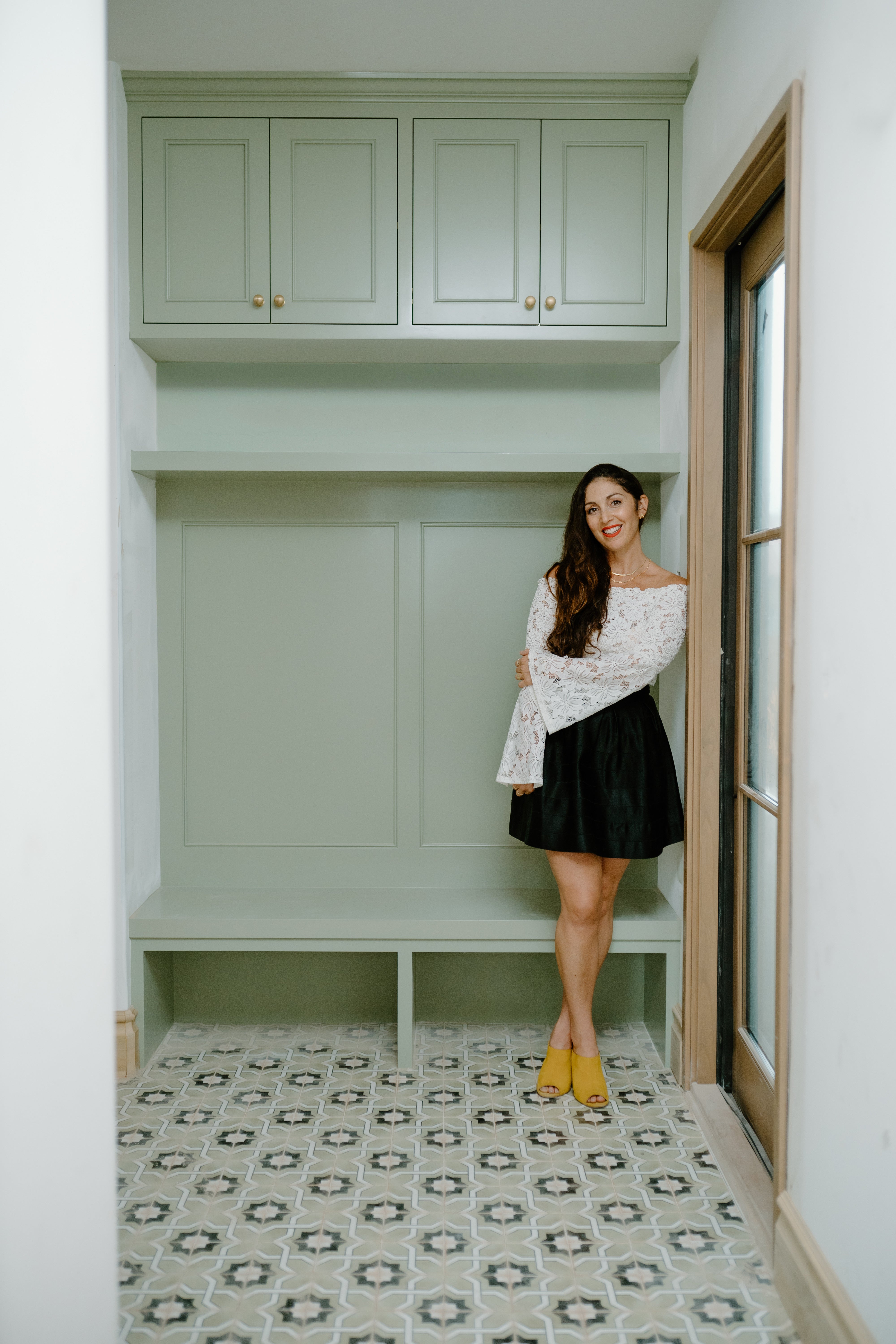 Vroom kept the part-time gig at the firm while attending design school. But soon, she tapped into her entrepreneurial spirit and left her first job to launch her own design business, which she launched from a makeshift office space in a shed in her mom’s backyard. But as she kept saying yes to small jobs—a sofa here, paint colors there—she started to wonder whether the career she’d been chasing all her life was really what she wanted. Discomfited by the thought, she took a brief career detour as a makeup artist, working on runways and for photo shoots. Realizing that the work wasn’t her calling, she boomeranged right back to design and relaunched her firm in 2012.