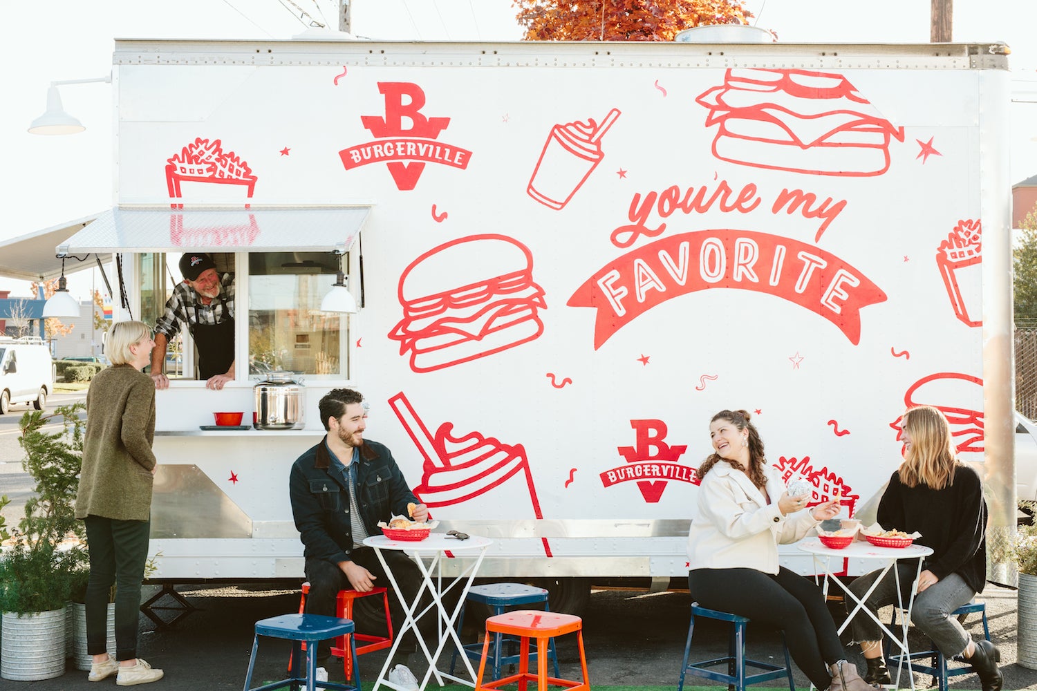 They must have started to take notice, because one day after an afternoon of tagging them, I got a message from the Burgerville account that said something like: “Hi, we love your love of Burgerville, you’re cracking us up with your Instagram stalking—would you be avail to talk about doing some design work at one of our new locations?” I had a call with the head of marketing and creative, and on that call they hired me to design and launch their first food truck here in Portland. Now we’re chatting about revamping some of their stores (they have 50 locations) as well as their new corporate HQ. See what a little Instagram trolling can do?
