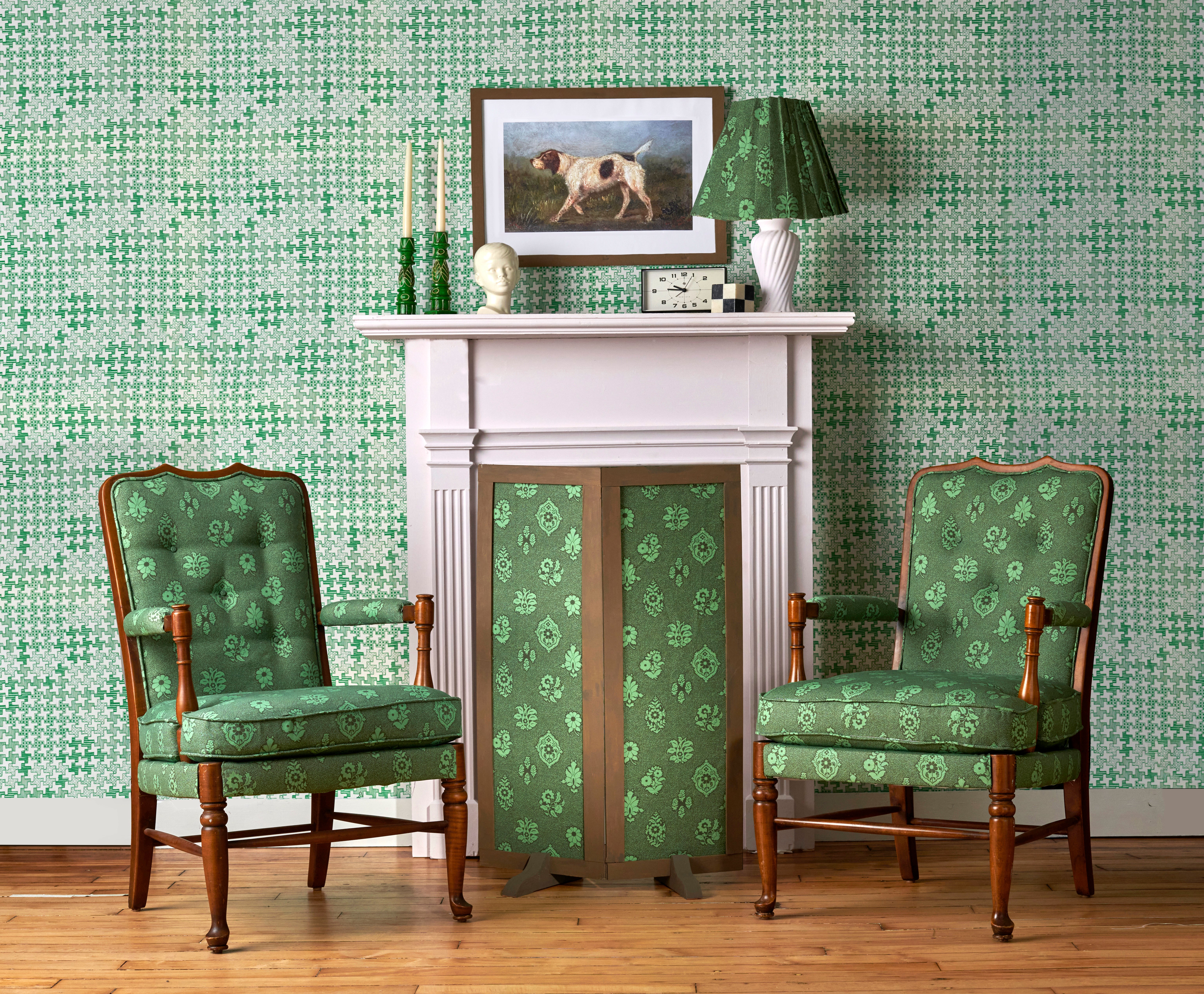 From a design perspective, the patterns themselves offer a look at a forward-thinking past, with the Étincelle (French for “spark”) utilizing boomeranglike shapes—inspired by early ideas of space travel—that would become popular in the Atomic Age to follow. Others harken to a more recent past, such as the Botanico pattern, drawn from the archives of Farkas-Ortenzi, a textile design studio active during the 1960s to 1970s that produced motifs ranging from pop-art-inspired daisies to fleur-de-lis and paisley. The Megaflora pattern, too, tells a rich narrative about the history and habits of its maker, who hand-painted each design with gouache and was known for hiding a butterfly in each of his creations.