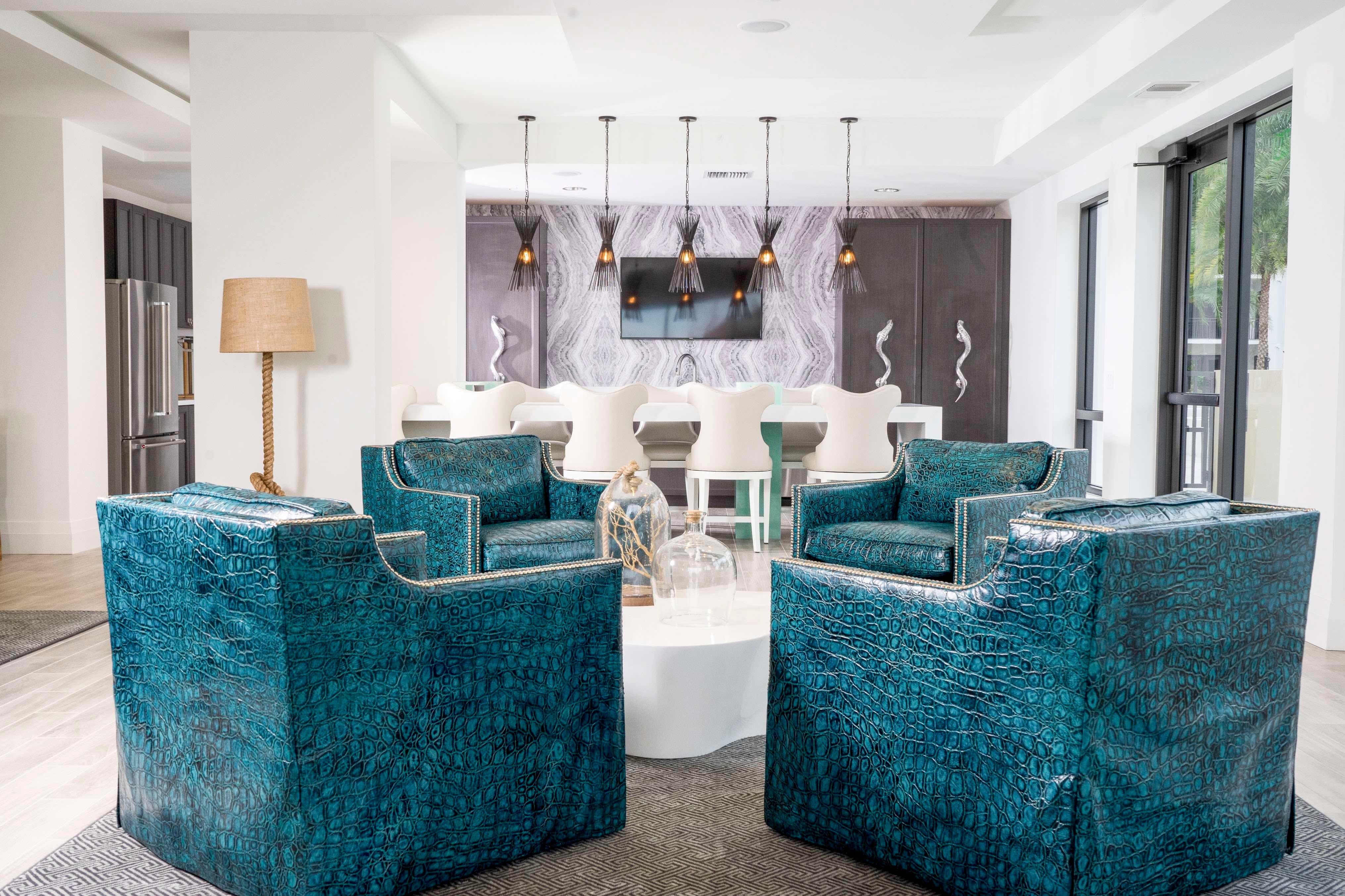 So how has Gaddis carved out this niche? By doing what she was already doing for residential clients—translating ideas into finished designs. The biggest difference is that clients present their lifestyles and inspirations, developers present marketing concepts. By turning buzzwords into actual environments, Gaddis is illustrating the lifestyles these luxury developments are offering. So “coastal chic” isn’t just brochure-talk, it exists in lobbies, pool areas and multi-family residences with balconies and open-concept kitchens—before anyone actually moves in.