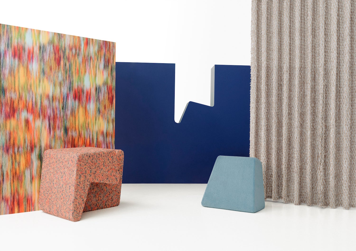 KnollTextiles released its highly anticipated collaboration with Nick Cave. The collection offers 10 exuberant designs adorned in kaleidoscopic hues and trippy patterns inspired by the artist’s intricately embellished works, including a space-dyed chenille upholstery fabric named Guise and an embossed, mural-like wallcovering called Big Floral.