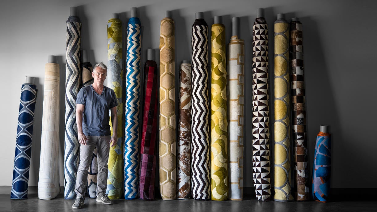 For the past 20 years, Bunting has been doing just that: decorative carpets (and wallcoverings, and upholstery, and pretty much anything else you can imagine—even fuzzy trucker dice) in hide. Having more or less invented the category, his creations took the design world by storm, and within a few years he was represented by some of the best showrooms in the country, including De Sousa Hughes, David Sutherland, Holly Hunt and John Brooks.