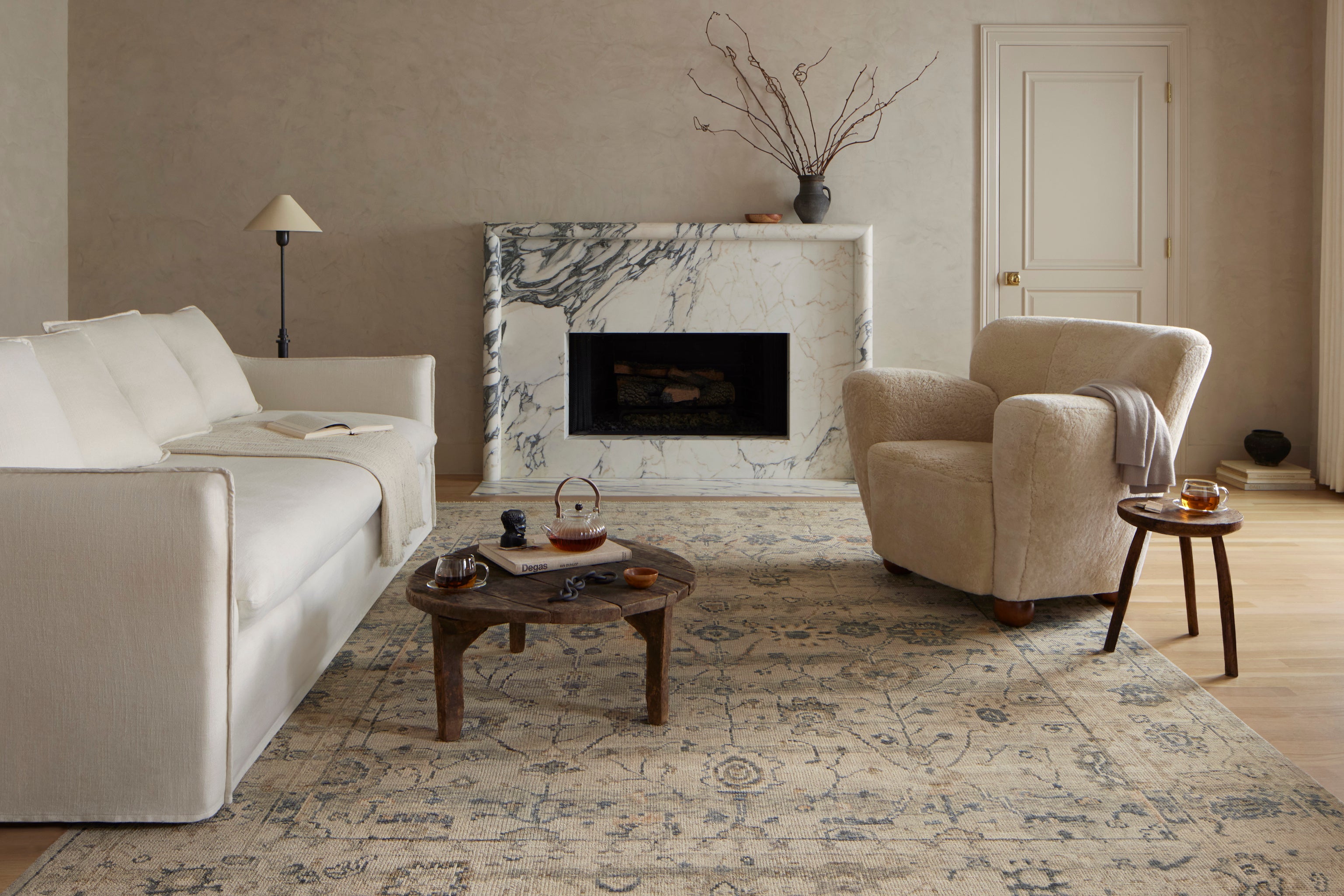 On the Loloi website, designers can compare items, check stock, place orders and confirm ETAs. To simplify the selection process, the platform includes a filter to search across four price ranges based on the MSRP for a standard 5-foot-by-8-foot size, from $499 and under to $2,000 and up. On the luxury end, out of a multitude of choices, Cyrus spotlights two vintage-inspired house collections. “Legacy is our most intricate line,” he says. “The colors are quite soft and sophisticated, and the way we create it—very shaved down with a deconstructed appearance—genuinely makes it look antique.” The collection, evocative of Persian heirlooms and awash in milky creams, faded blues and burnished reds, has been coveted by designers since its introduction six years ago. Shades in the recently released Dominic line are stronger, more saturated, but intentional variances and distressing denote an equally one-of-a-kind character.