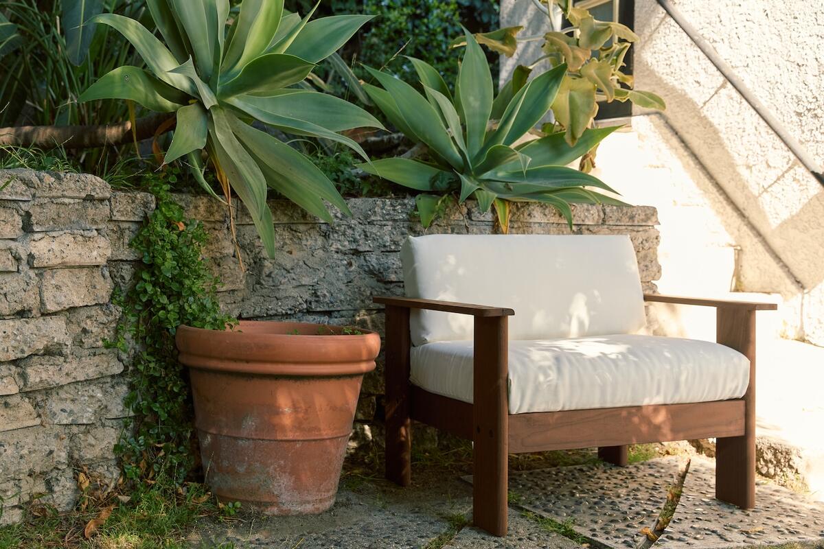 Sabai unveiled Bacana Outdoor, its inaugural line of eco-friendly, weather-safe furniture. An homage to Afra and Tobia Scarpa’s minimalist Monk chair, the clean-lined collection offers a sofa, love seat, armchair and ottoman composed of biodegradable materials such as thermally modified ashwood and fabric made from banana fiber.