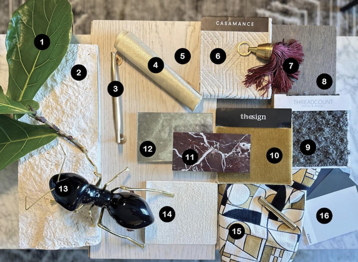 Here, the Marbé Designs founder breaks down the details, from a fiddle-leaf fig branch to metallic faux leather.