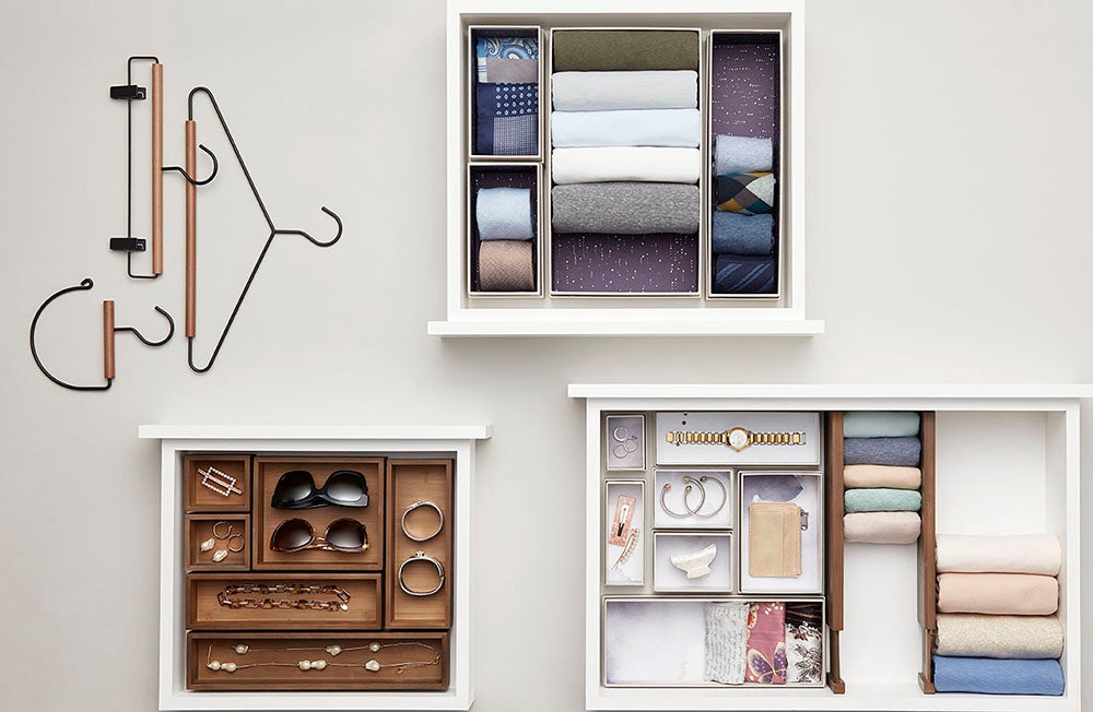 No surprise then that The Container Store is betting big on the new collection. In stores, the line will get the red carpet treatment, with its own specialty section that Gehre calls a “mini shop,” which the retailer is placing front and center. Two large visuals flanking the display will spotlight the story of the partnership; Kondo’s signature watercolor pattern (which is featured on the fiberboard pieces in the collection) will be used as wallpaper behind the display’s shelving. “It can’t be missed, that’s for sure,” says Gehre.
