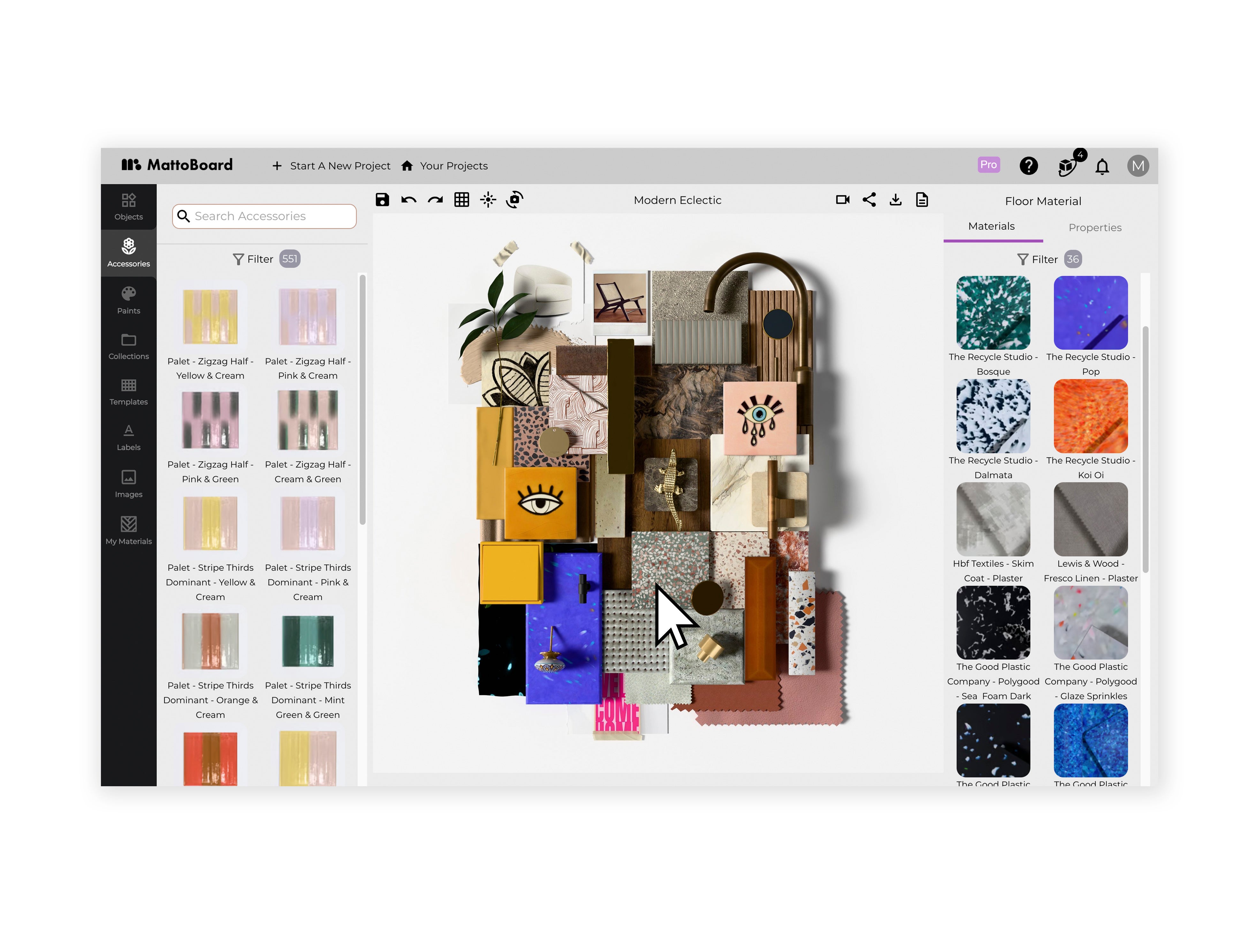 “Anyone under the age of 40 in my office was not starting their projects in a material library. They were going online, and they had hundreds of tabs open of different products, of different websites—researching them, downloading pictures, putting them into Photoshop, seeing how they mixed and matched,” he says. “And then they’d have to change their mind, or the client gives them feedback, and [the designer] goes through this process again.”