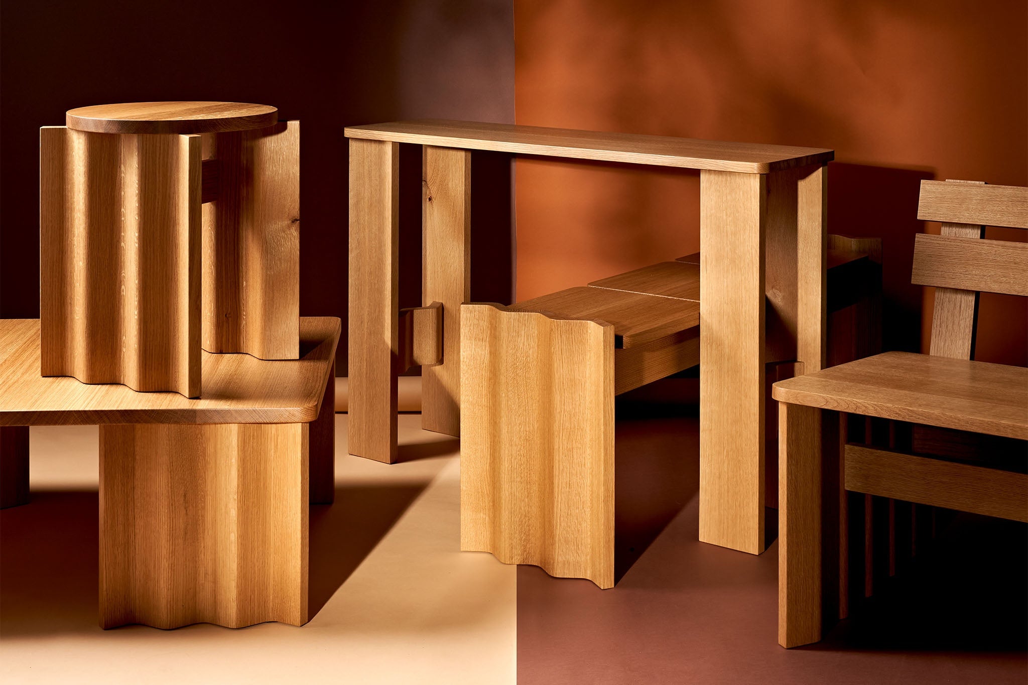 That search led to discovering a passion for designing contemporary pieces inspired by her homeland. “Although I’ve not been living in South Africa for quite a while now, I still feel very close and connected to it,” she says. “This [collection] was kind of like a tribute.” The line, titled Corrugated, is influenced by corrugated iron, a material that’s used widely in the country, especially in urban environments, because of its affordability. Lourens immersed herself in all things South Africa, from music to podcasts. “Once my brain catches an idea, it’s kind of hard to escape it, almost like it’s haunting me,” she says. Those ideas turned to sketches, which turned into models made from wood scraps, which turned into full-size mock-ups using cheap wood, where she works out the joinery and comfort until it reaches the final stage of production—at which point she employs white oak.