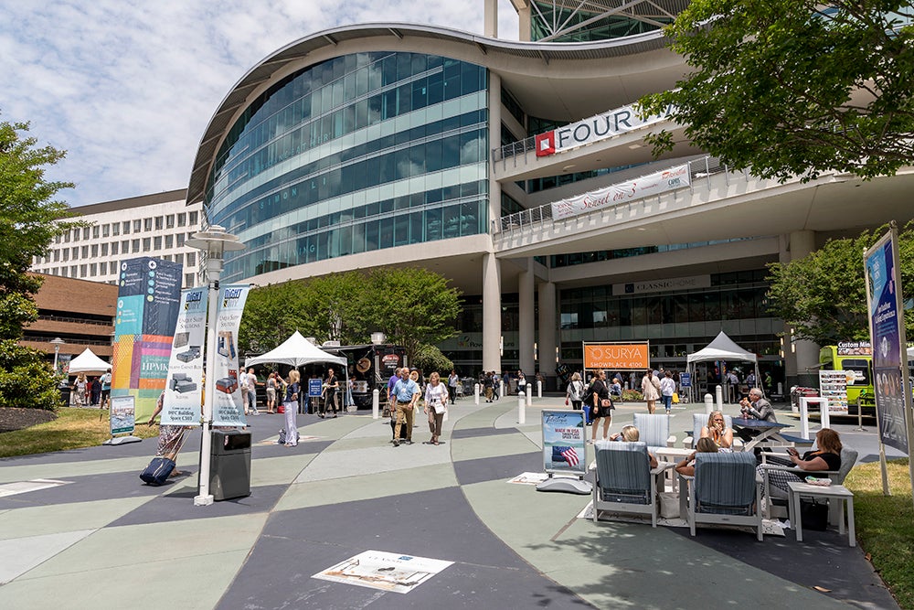 Homepage photo: High Point Market’s Center Stage programming unfolds on the esplanade in front of Showplace. | Courtesy of the High Point Market Authority
