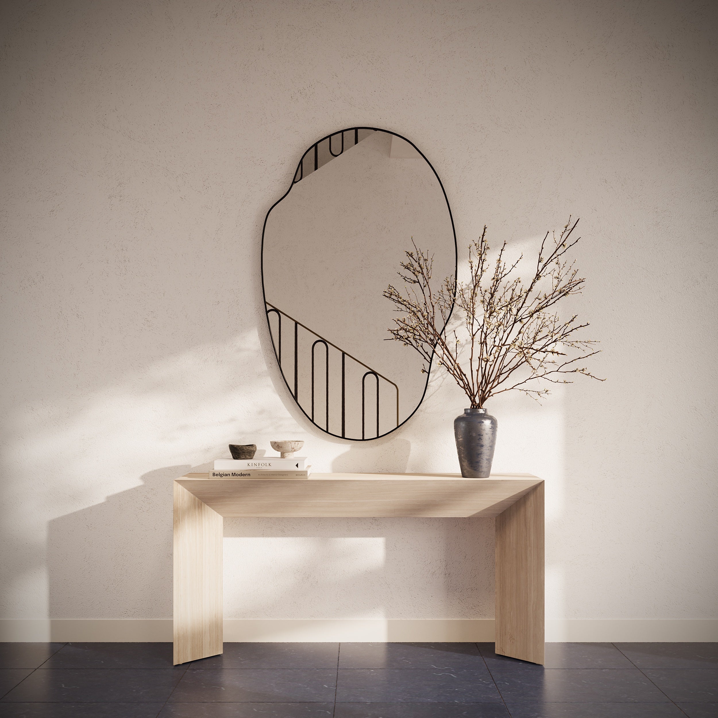 “At Ann Sacks, we love to give our designers the variety and flexibility to make something their own, and a powder room is such a specific space that you could really experiment with either vanity,” says Gundberg. She imagines a maximalist environment with printed wallpaper, gilded sconces and patterned floor tile—“lots of stuff going on.” To double down on the magnificence of the stone, another potential aesthetic is tonal: “At KBIS, we showed Evelyn in Rosa Lagoa with Rosa Lagoa slabs behind it, and Ander in Vecchia against a Vecchia wall. The result was breathtaking: quiet, enveloping, yet so impactful.”