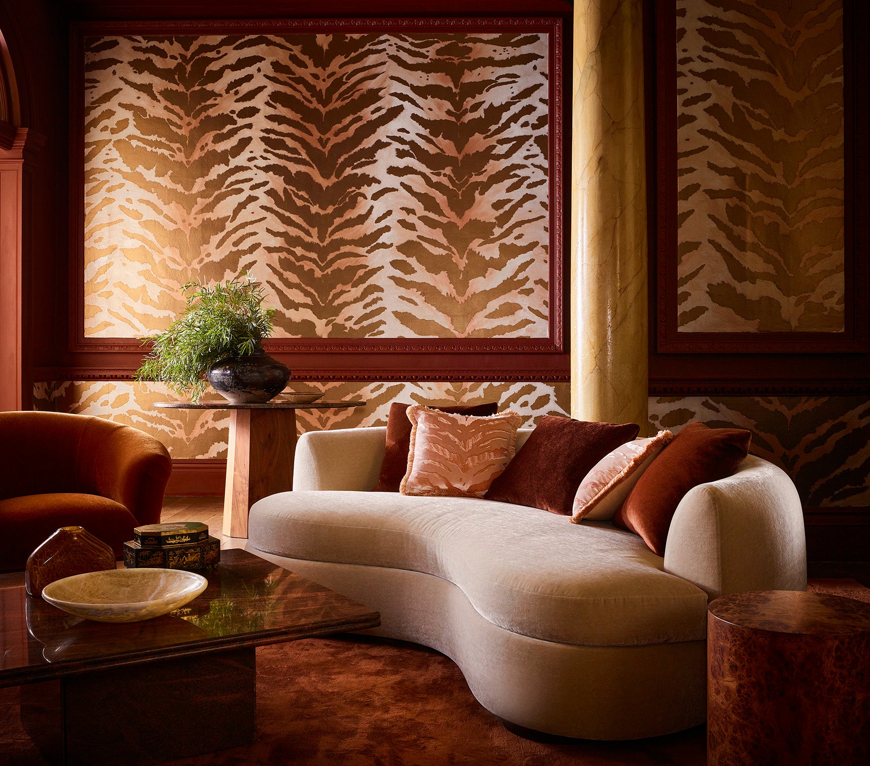 Bespoke wallcoverings brand Fromental teamed up with fashion designer Harris Reed for a collection of homewares inspired by the pair’s past collaborations. The partnership began when Reed tapped Fromental for custom wallcoverings in his own apartment—an experience that led the two to work together on three subsequent runway collections. Now, the brand has brought his runway vision to life on its hand-painted and hand-embroidered wallcoverings, along with rolling out new cushions, bolsters and throws, each inspired by the designer’s couture collections.