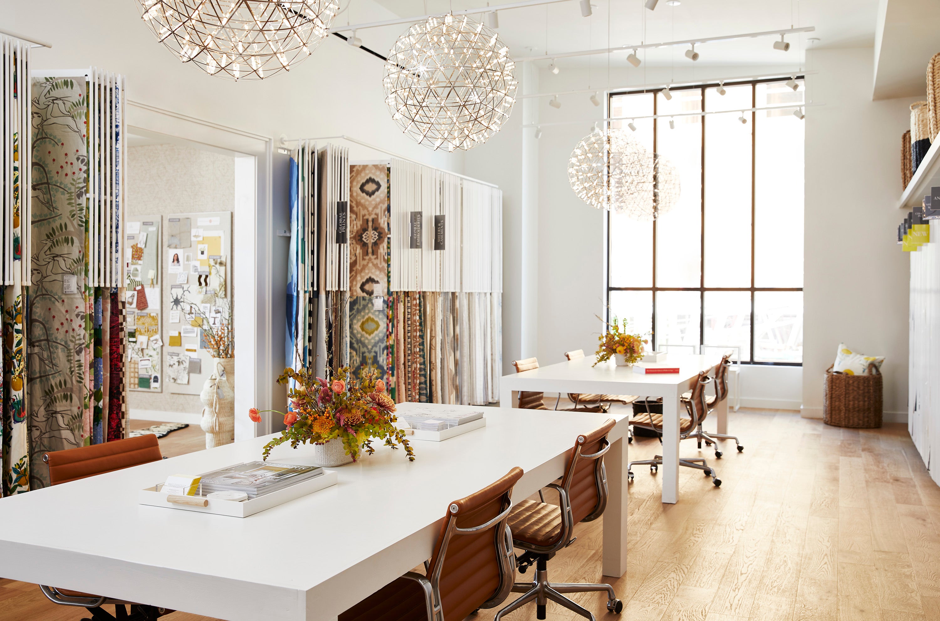 While its product line is reserved for designers, the front of the space features the company’s first public boutique, which offers accessories, antiques, art, hand-made ceramics and even dog beds covered in its indoor-outdoor fabrics. The assortment features goods from local Nashville artisans, as well as French and Finnish artists that communicate the brand’s ethos. “[The goal of the showroom] is to help designers finish projects, but also to give the consumer a taste of Schumacher and introduce them to the brand, so that if they ever hire a designer, they know about us,” says Caponigro. Along with welcoming walk-in shoppers, the boutique will also host monthly events, including flower-arranging classes, trunk shows and book signings.