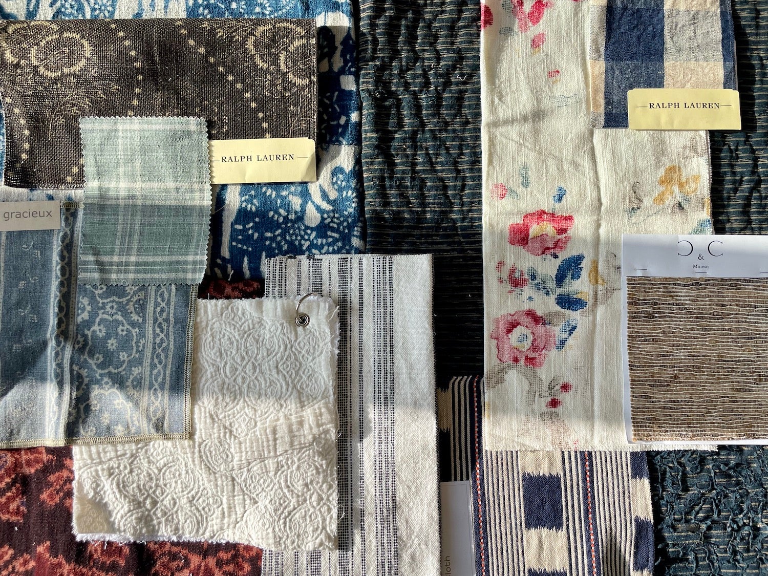 Here, Leffers breaks down the details, from matelassé coverlet samples to bandana-inspired swatches.