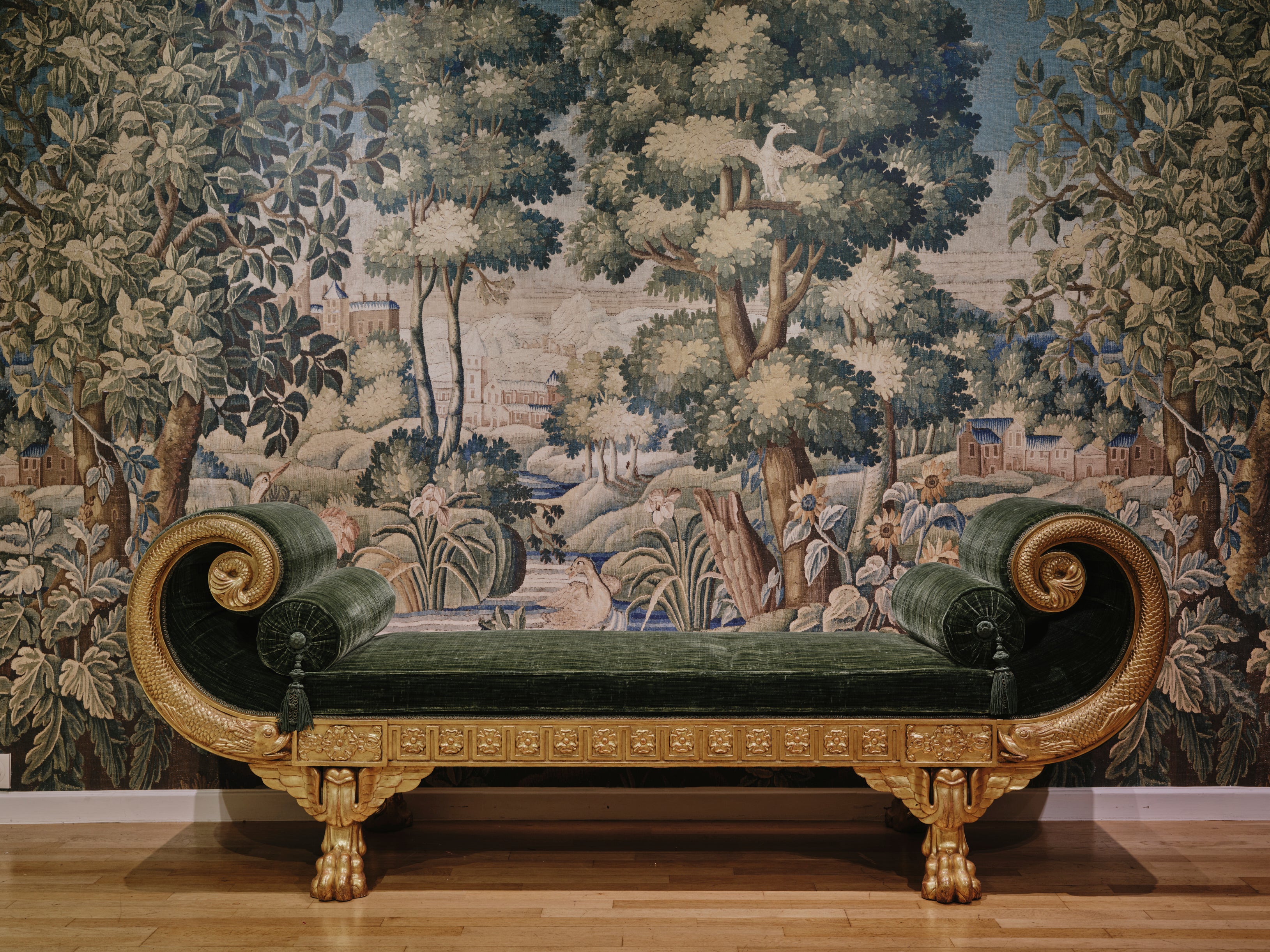 In the late 1980s, Watts split into two companies, one focused on religious products and another on fabrics and wallcoverings for the secular market. The latter brand—now called Watts 1874—has had an up-and-down history in the States. After being discovered by multilines in the 1990s, it made its way into the American market via showrooms like Ainsworth-Noah and Dessin Fournir. But ultimately, Flint and the brand’s managing director, Marie-Séverine de Caraman Chimay—a fifth-generation descendent of one of the company’s founders—opted to pull the line from showrooms and build direct relationships with U.S. designers. In recent years, they’ve had success connecting with luminaries like Timothy Corrigan, Michael S. Smith and Ken Fulk.
