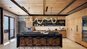 They emerged with what they call the “Cane” series, hand-blown glass that features wave-patterned lines embedded in the glass itself—a feat of technical prowess on Holtzinger’s part. The multistep process can take up to two days for just one fixture, not to mention that any mistake along the way means starting over. In short, to produce these objects at scale was, for most, a herculean if not foolhardy undertaking. “It felt very risky, and I think a lot of our peers thought we were a little bit nuts,” she says. “They were like, ‘Really? You’re going to do this process and have to replicate it over and over again?’ I think I even questioned Adam at one point, but I’m glad we stuck with it.”