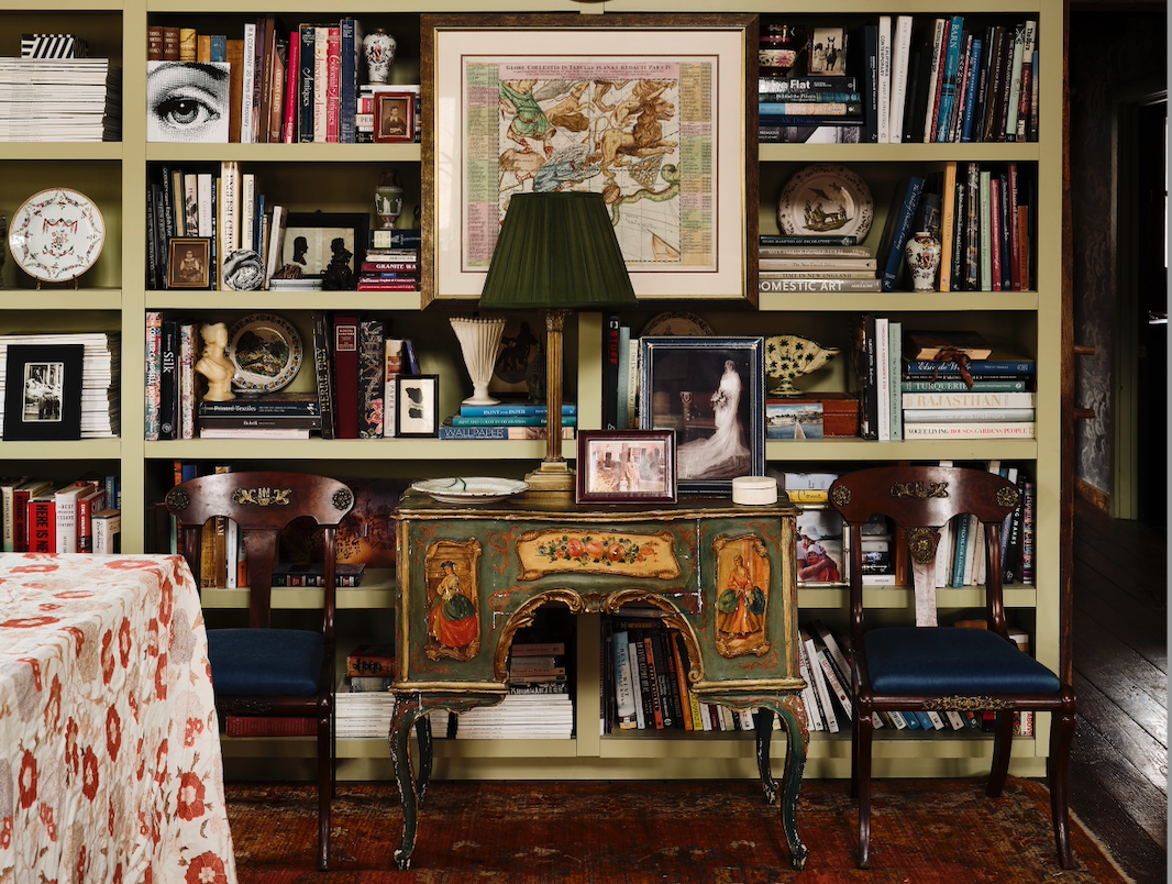 There are no rules about where the books come from either. But again, it’s rarely the client who provides the titles that end up in the final shot. More often, a stack is lugged into the home, distributed artfully, then lugged back out. Books are universally beloved for the way they add character to a room—and universally resented for their weight. “It’s kind of miraculous how little space books take up for how extraordinarily heavy they are,” says stylist Mieke ten Have. “Filling a bookshelf can be kind of an endless vortex.”