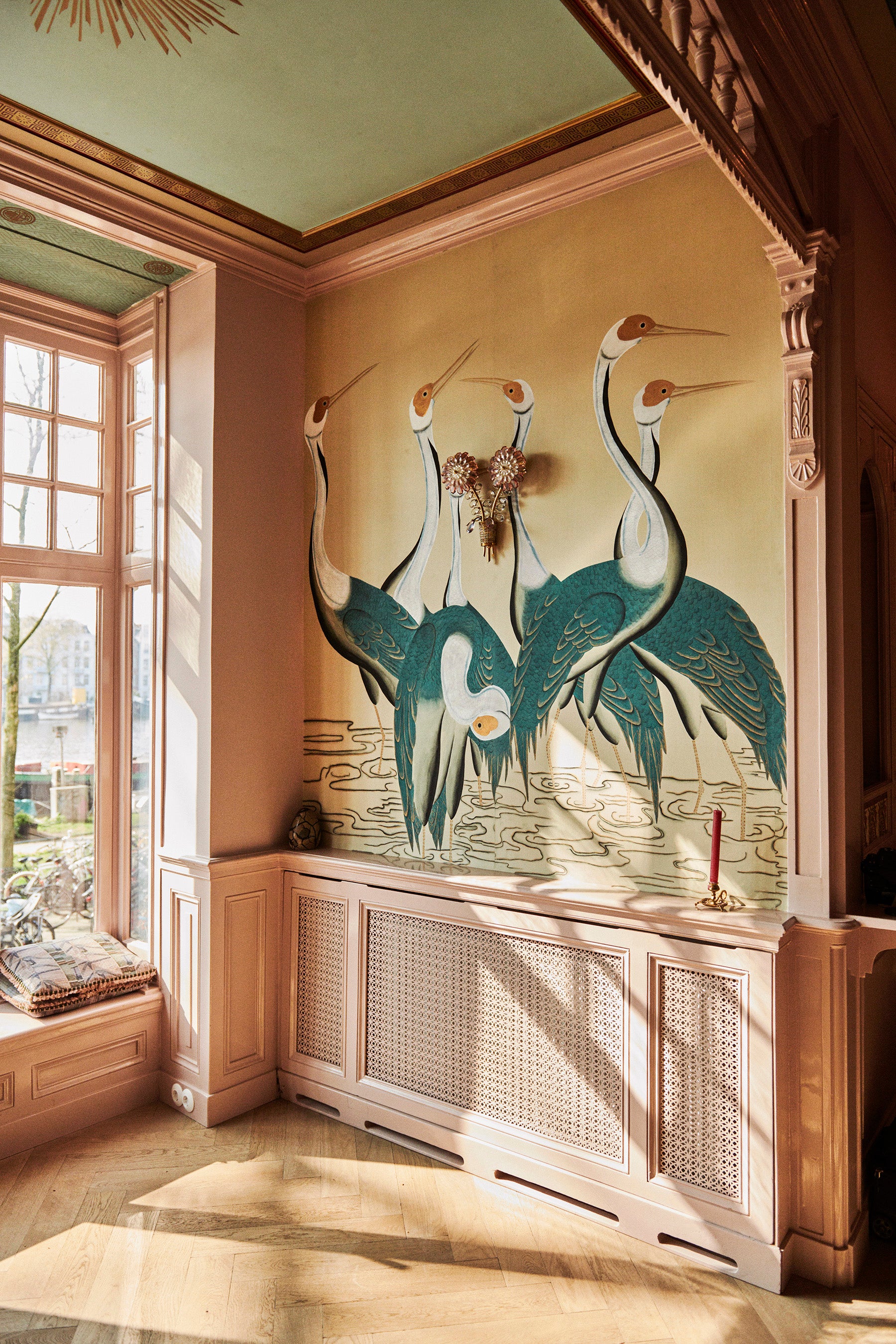 Homepage image: Sarus Cranes hand-painted wallpaper, interior by Rachel van der Brug of Rho Interiors | Elmar Krop for de Gournay, courtesy of Rizzoli