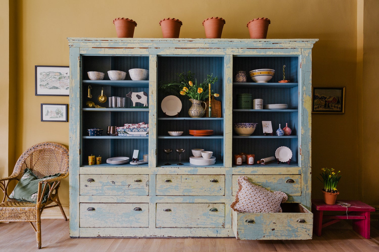 My grandfather’s dream was to open an antiques store. He was a picker, as they call it, and he would take me to estate sales, flea markets and antiques malls. I cannot tell you how many wire chicken baskets and primitive cows were on the shelves of my grandparents’ house. He really passed it on to me. I grew up like a junior picker, and now I get to do it for work. I’m always in rapture. I go all over the country—Kentucky, Indiana, Missouri, Alabama, Pennsylvania, Vermont and Maine. Sometimes I just get in a Sprinter van and drive myself. Often I’m visiting towns hours outside of urban centers. It’s a meditative experience, and I get to take a break from life and do it solo. I’ve visited basically all of the largest antiques malls in America and scoured these incredible places, met interesting people. It’s been a fun scavenger hunt that I get to go on all around the country.