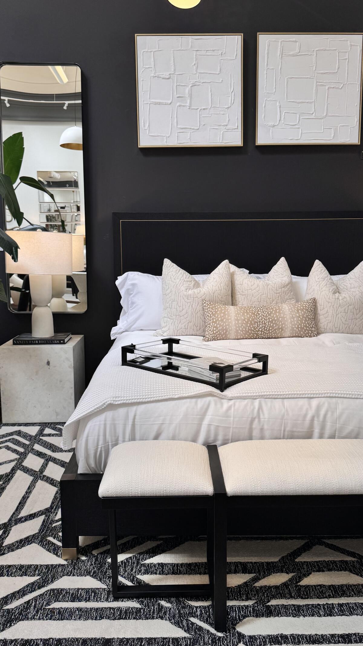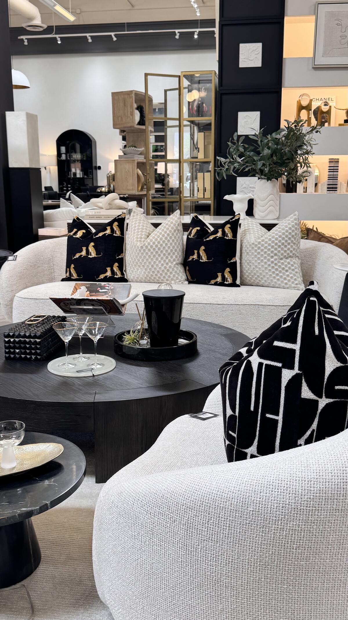 One of the first things that might strike a customer walking into Quinn’s showroom (or a potential client clicking through her portfolio) is the unmistakable color palette: Save for accents in metallic, stone and wood, everything is black and white. It’s a style signature and gamble that has clearly worked out for Quinn, who got her start in real estate before launching a design firm in 2015. The showroom came about in 2023, in partnership with Catherine Crandall of Abode Fine Living. Ahead, Quinn chats about starting her retail arm out of real need for in-stock products, the consistency of changing up the showroom floor and why the color scheme is such a hit with customers.