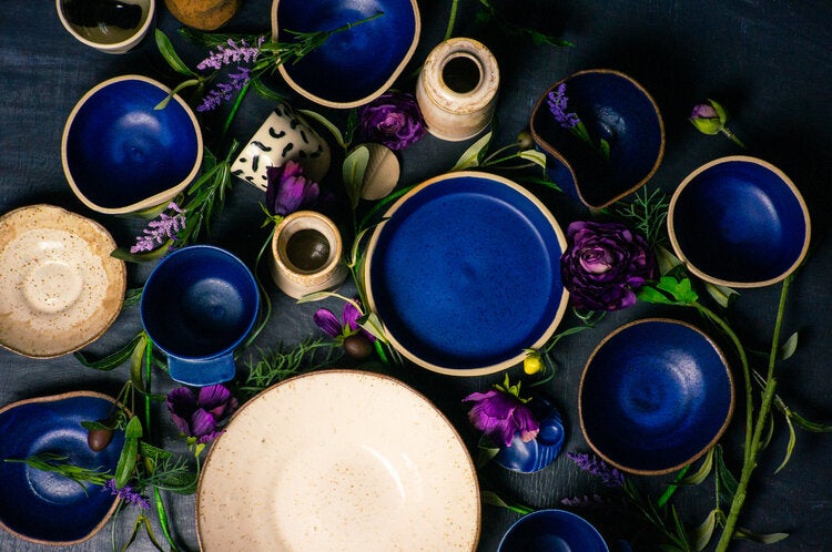 The artist’s latest collection, The Holiday Drop, features an assortment of ceramic dinnerware with minimal glazing and curvy, organic silhouettes, including an oversized coffee mug in various finishes and a two-toned snack bowl with an undulating rim. “The forms are simple but recognizable,” he says. “This was a collection made with intention—the culmination of all my previous successes and failures.”