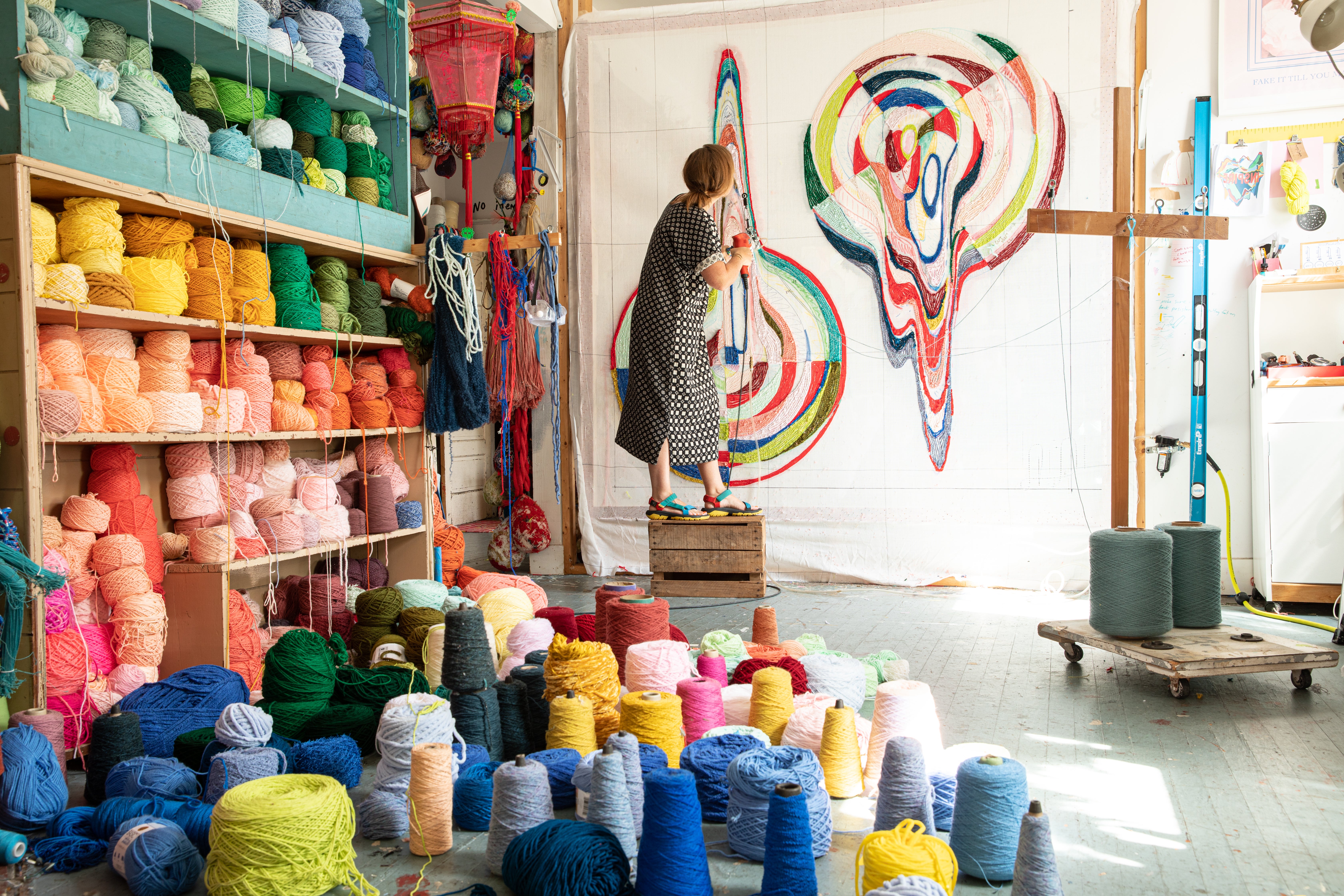 That all changed in the fall of 2015, when a friend sent her a video of artisans in India hand-tufting rugs. “I was instantly hooked and began hunting for a single needle tufting gun,” the artist says. “I was able to source one from China and then spent about a year between other projects teaching myself how to use it.”