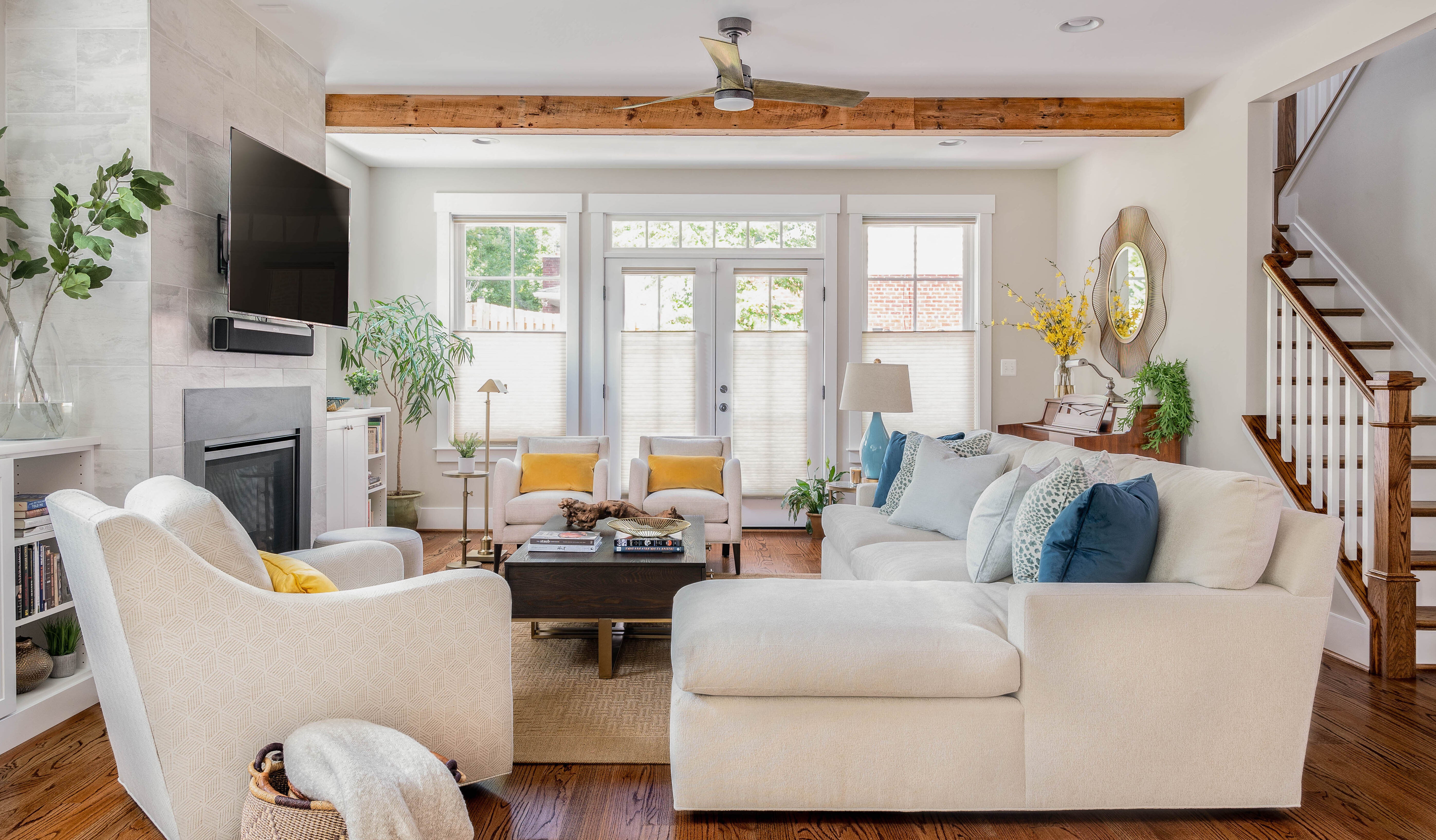 Homepage photo: A living room by DuVäl Reynolds features motorized shades from Hunter Douglas. | Markus Wilborn