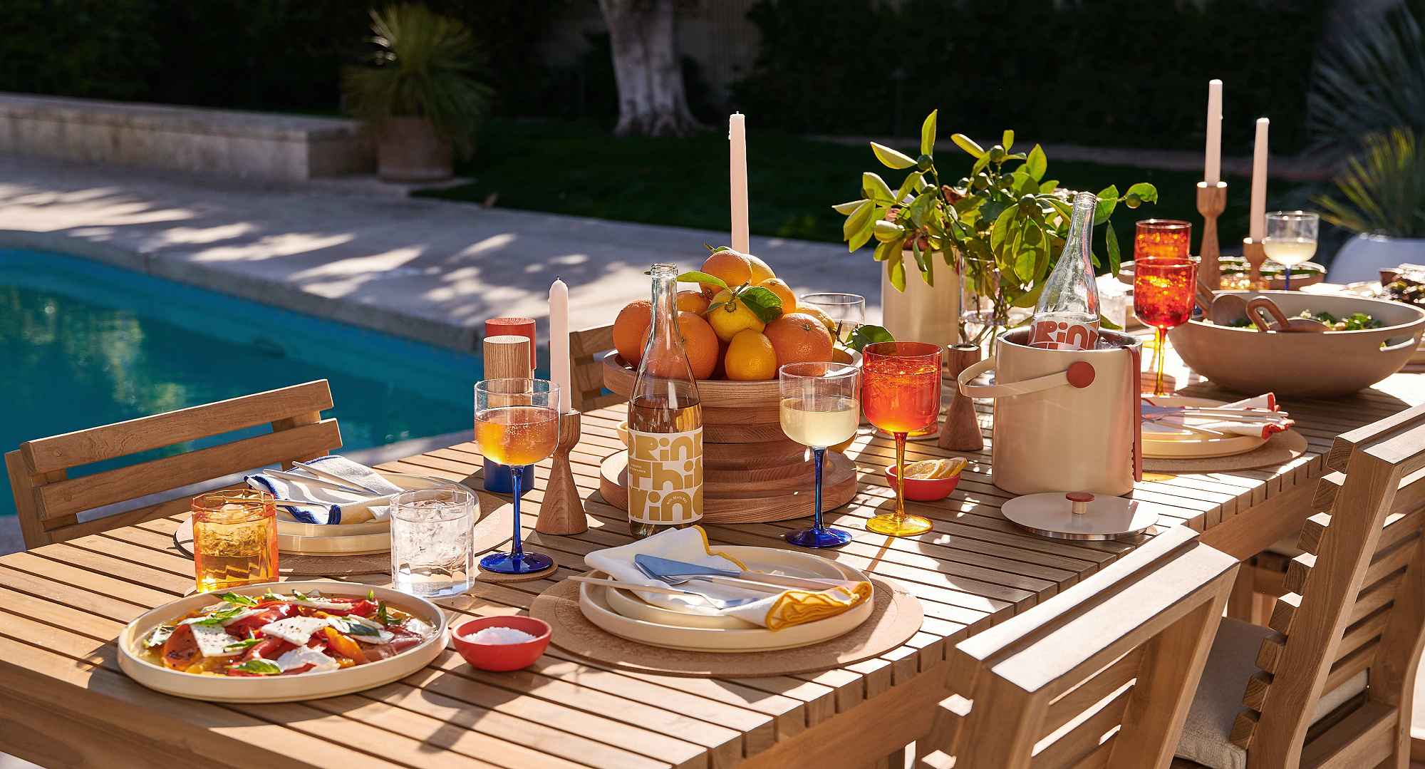 Crate & Barrel tapped cookbook author Molly Baz to create a collection of kitchenware, tabletop pieces and bar accessories that would fit into the chef’s own at-home cooking routine. Drawing inspiration from 20th century modernist Italian design along with parties thrown by Baz and her husband at their home in Los Angeles, the assortment includes striking and simple pieces featuring bold primary colors, organic curves and playful colored glass.