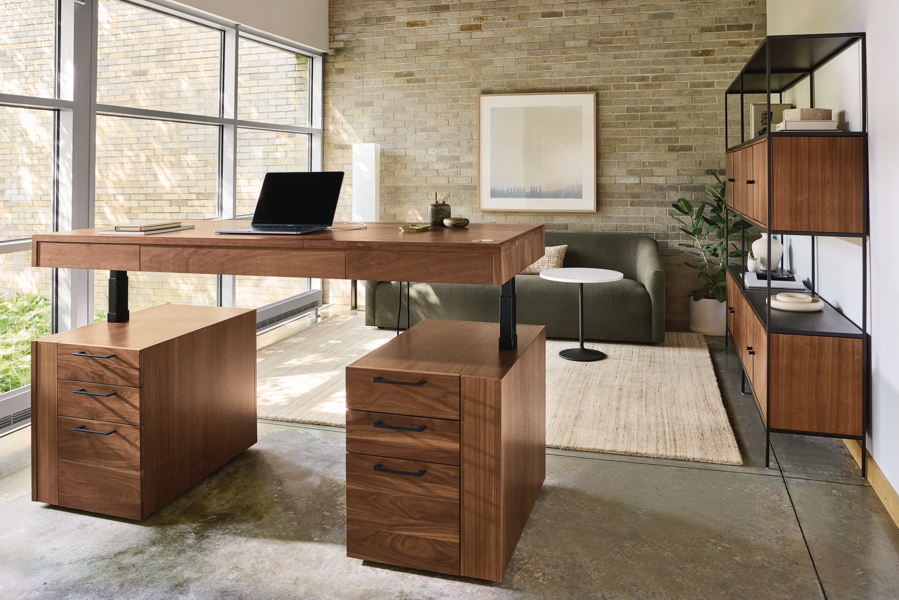 Room & Board has debuted its first collaboration with global architecture firm Gensler, which utilized its research into projected living and design habits in 2025 to inform the direction of the partnership. The result is the Lincoln collection—a configurable sit-stand wood desk and a console, each designed to accommodate the need for hybrid work models.